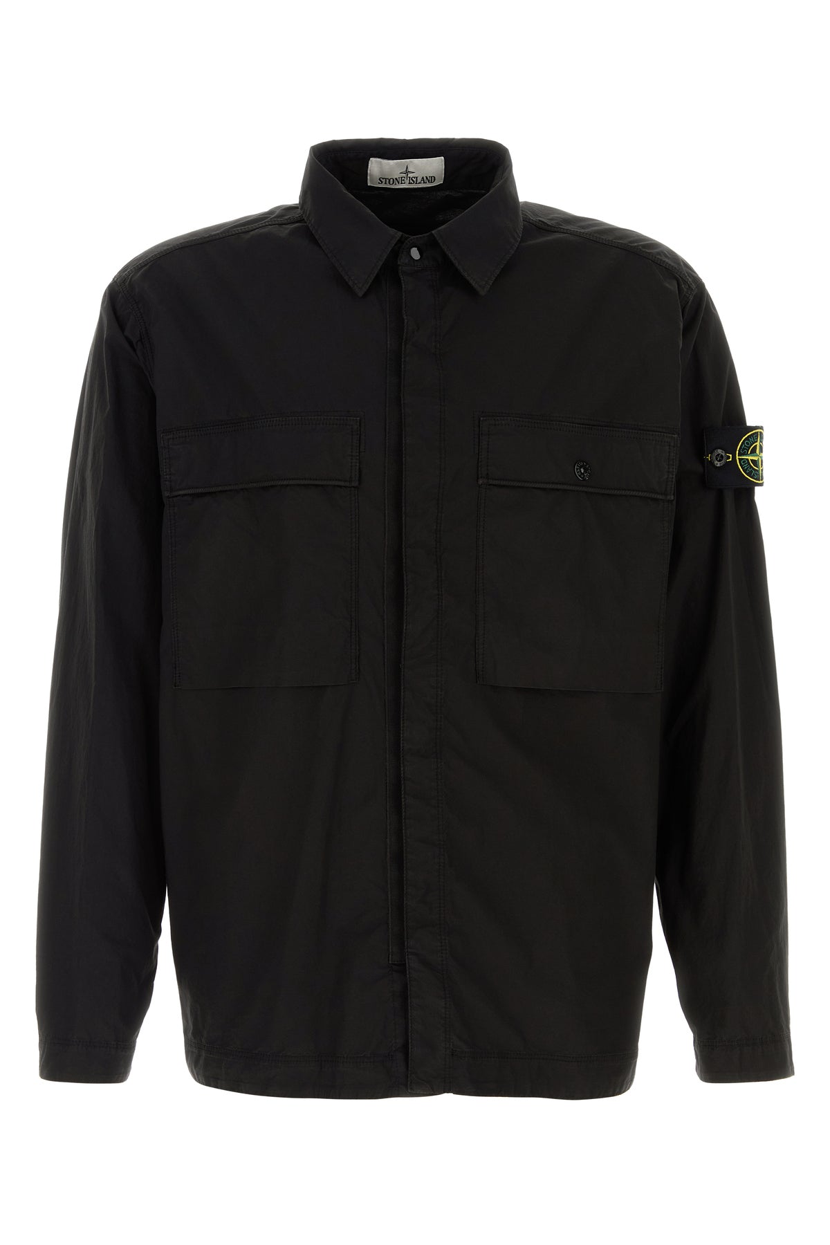 Shirt realized in stretch cotton poplin enriched by detachable logoed label on the sleeve.