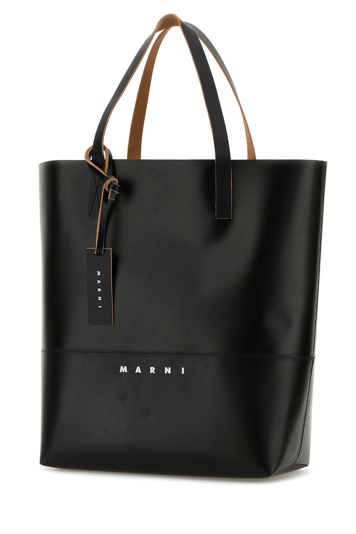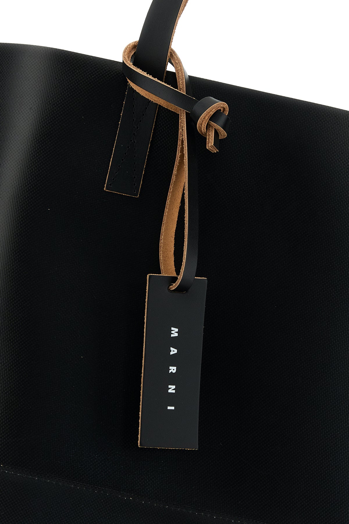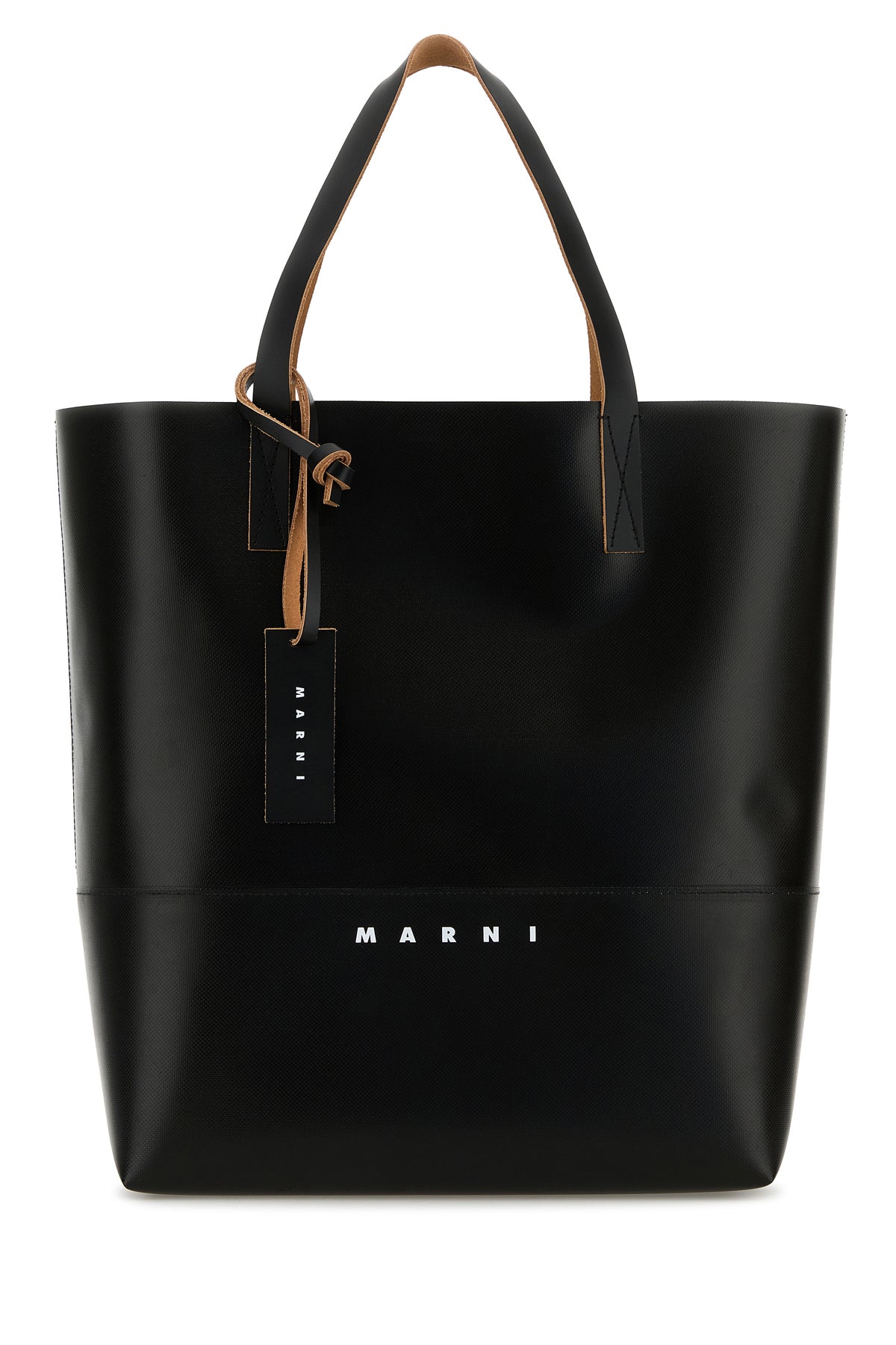 Handbag realized in PVC characterized by printed logo at the front enriched by detachable logoed leather accessory.