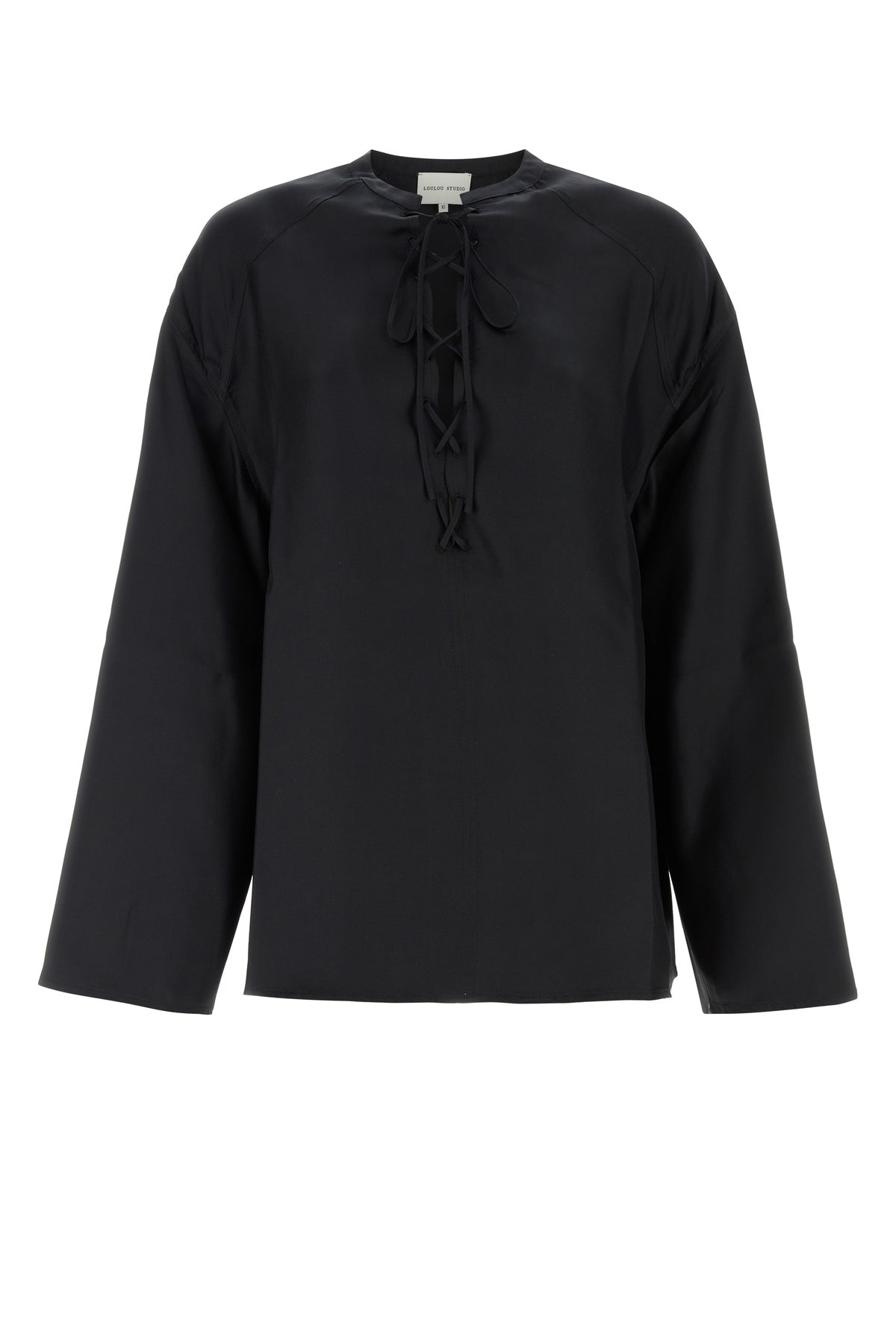 Blouse realized in pure silk characterized by peculiar closure at the front.