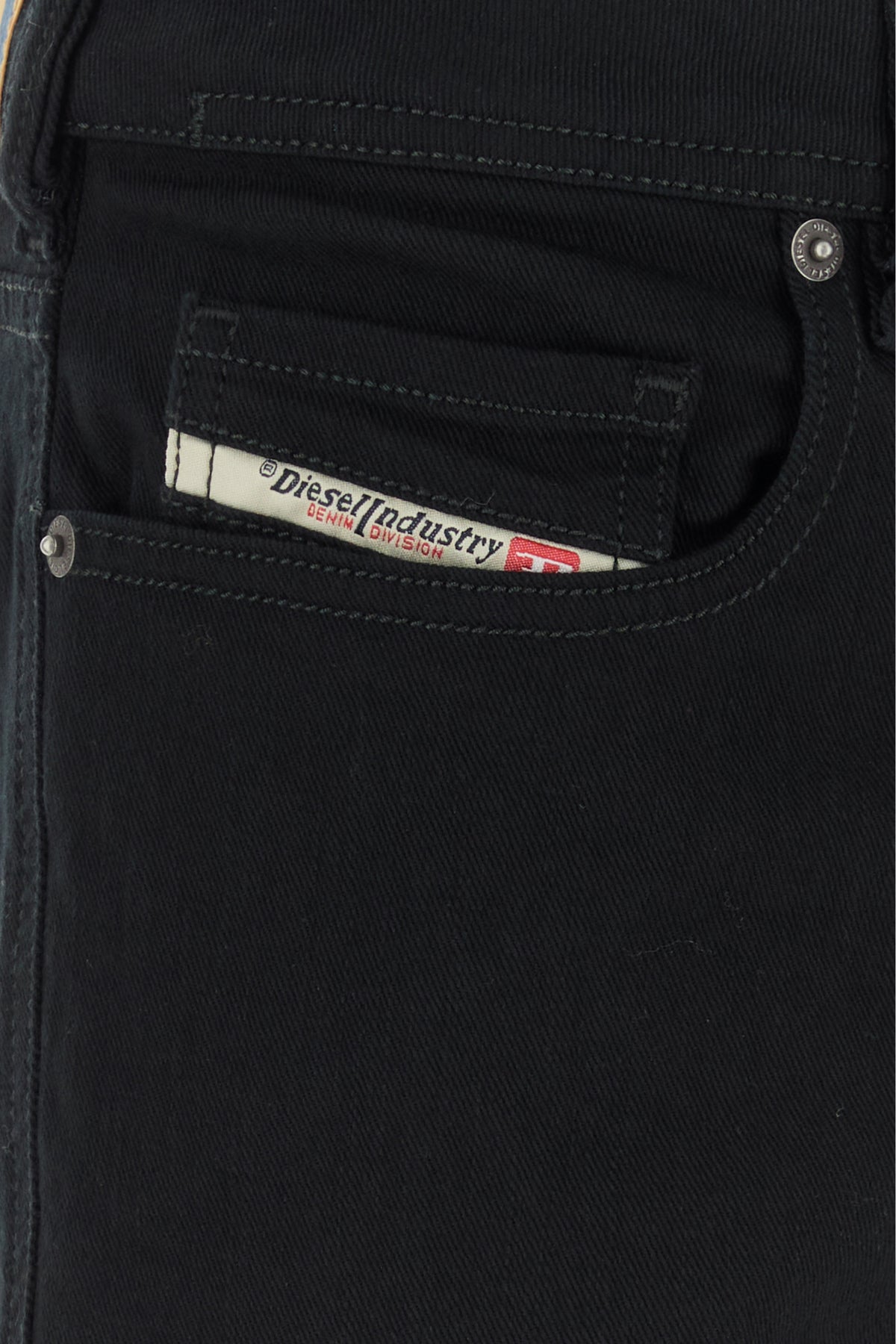 Jeans realized in stretch cotton denim enriched by logoed label at the front and at the back.