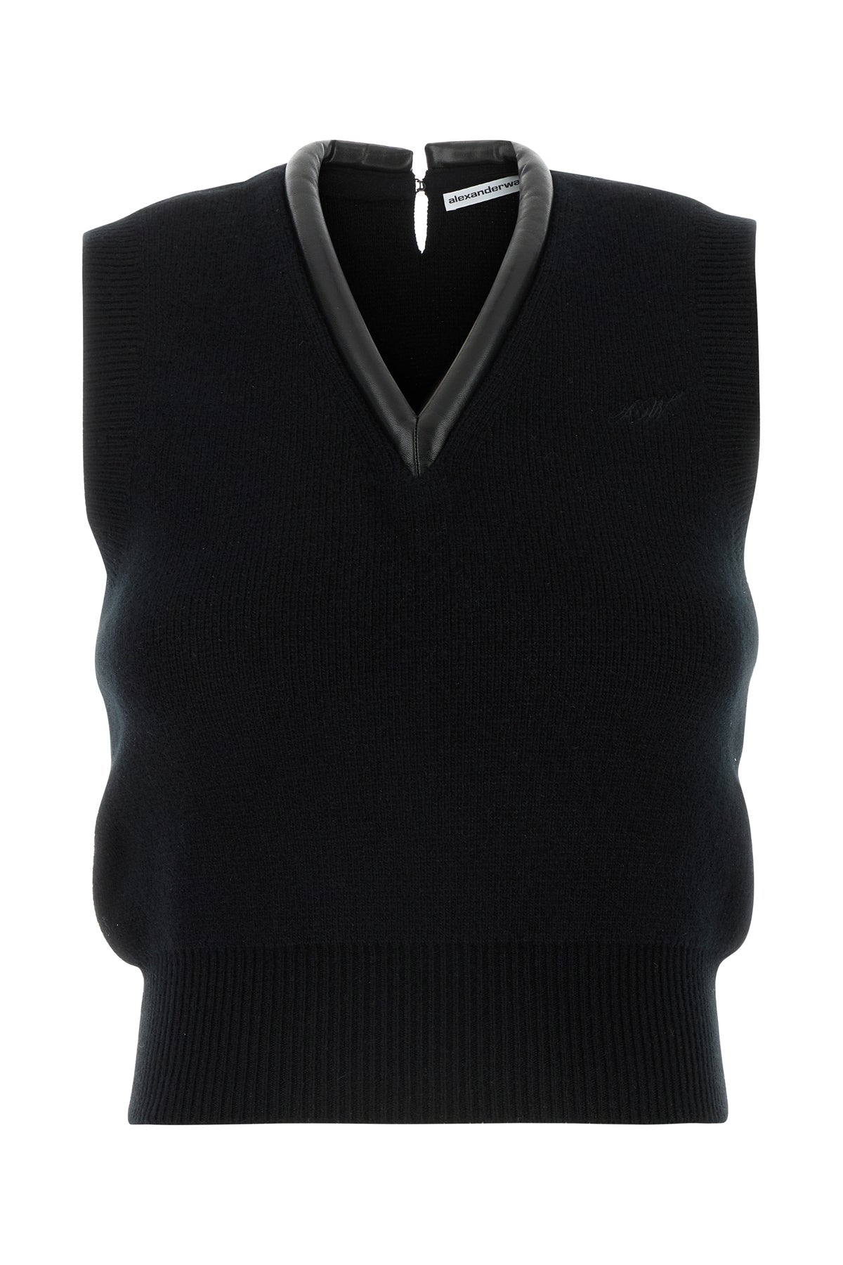 - Tonal leather V neckline