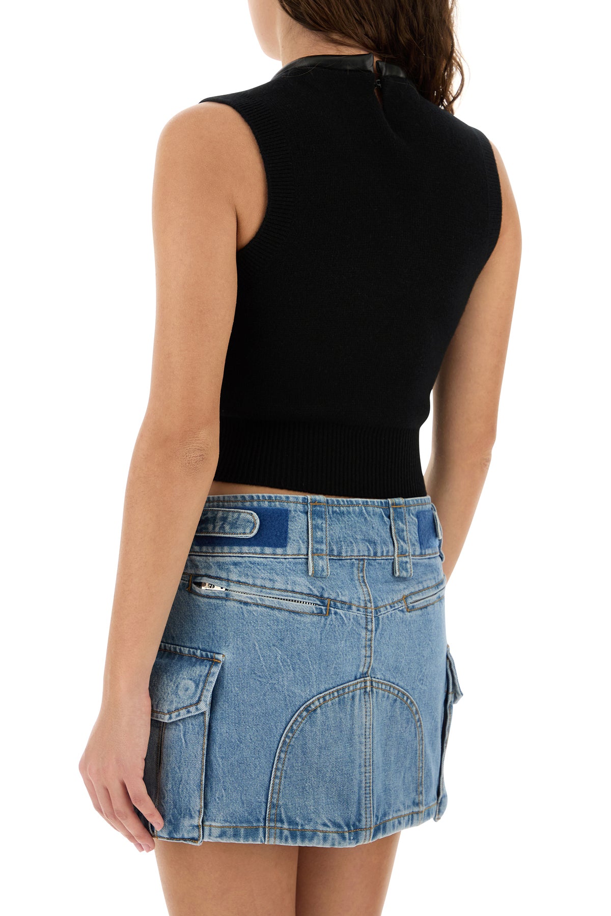 Black stretch wool blend vest