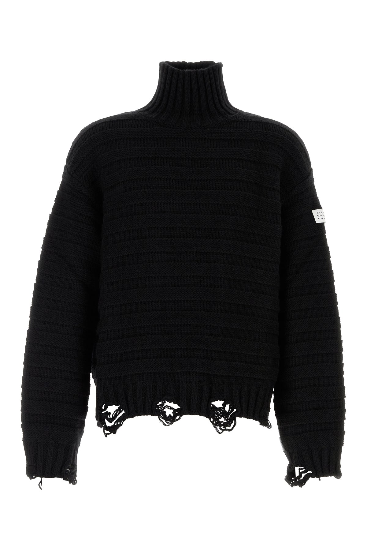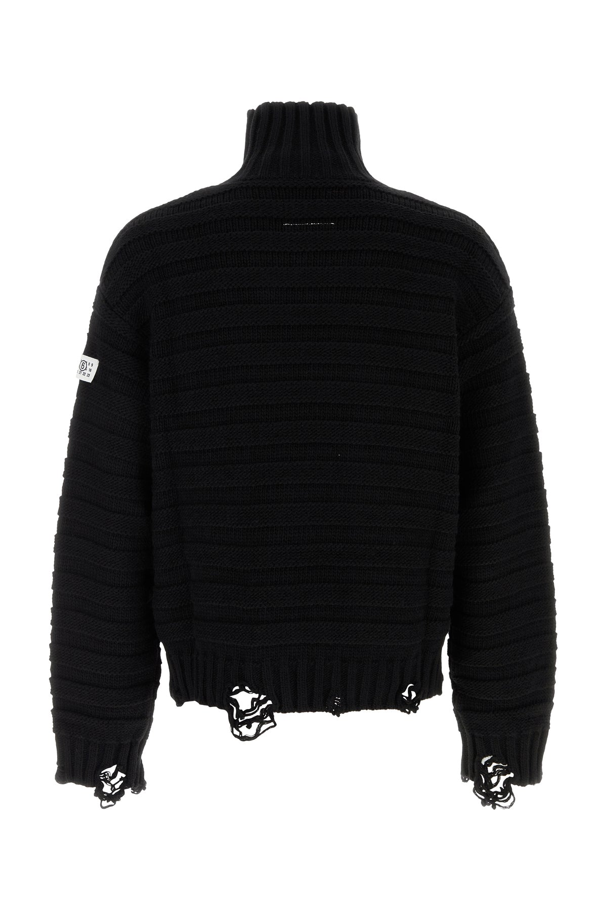 Sweater realized in virgin wool and acrylic characterized by iconic contrasting stitchings at the back enriched by contrasting logoed label on the sleeve.