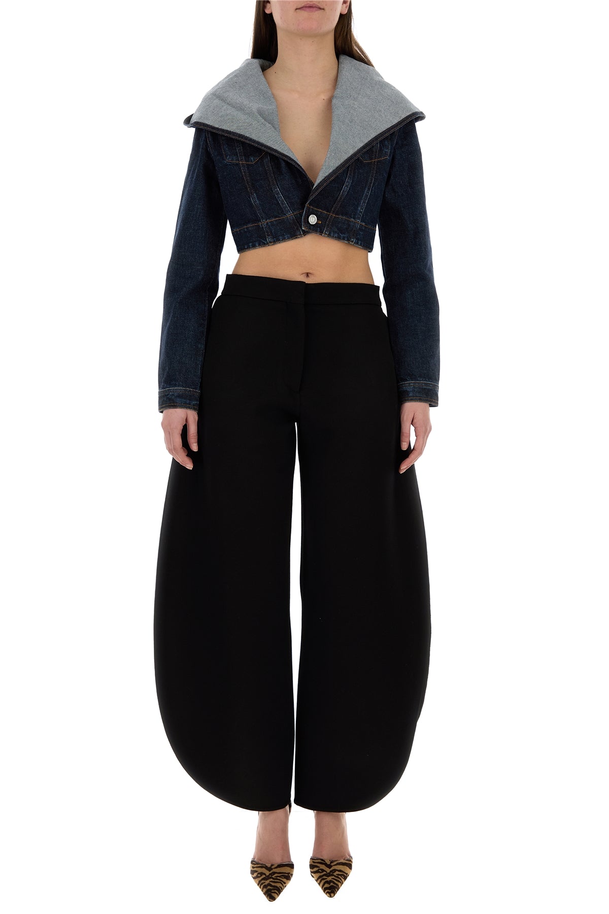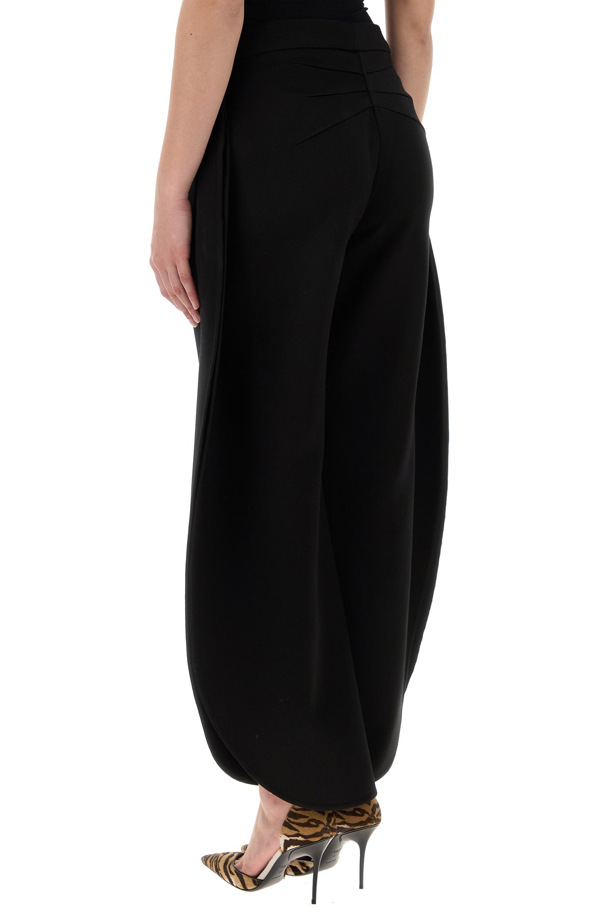 Wide-leg pant realized in pure virgin wool characterized by gathering at the back.