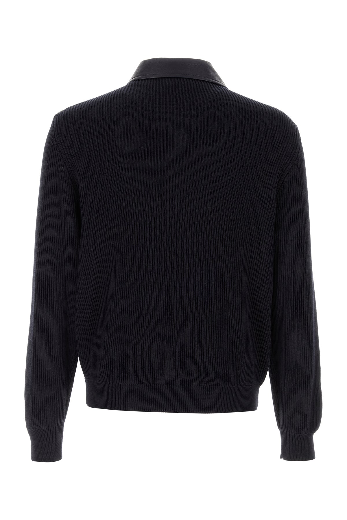 Jacket realized in leather and pure cotton knit.