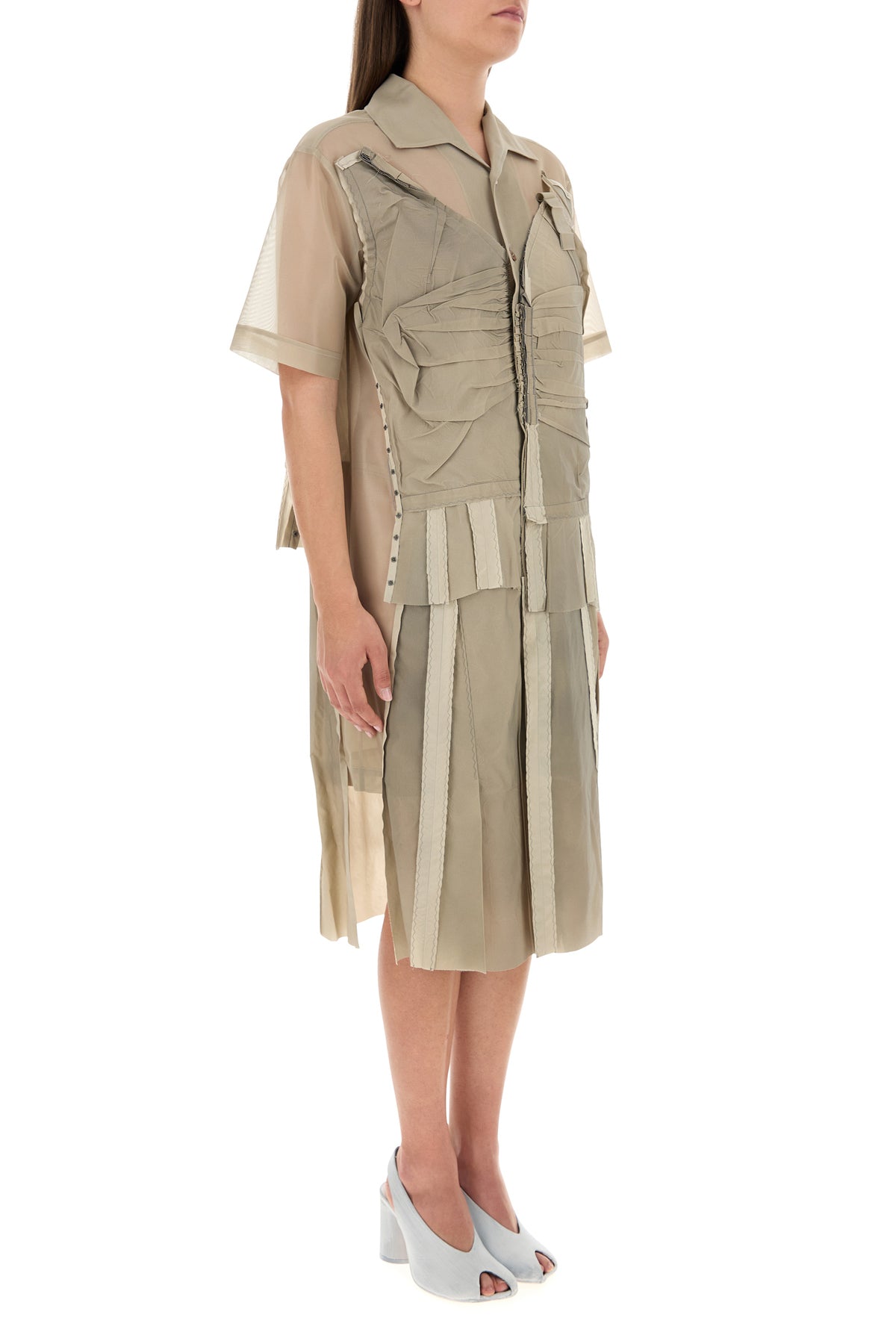 Shirt dress realized in mesh with viscose inserts on the entire surface.