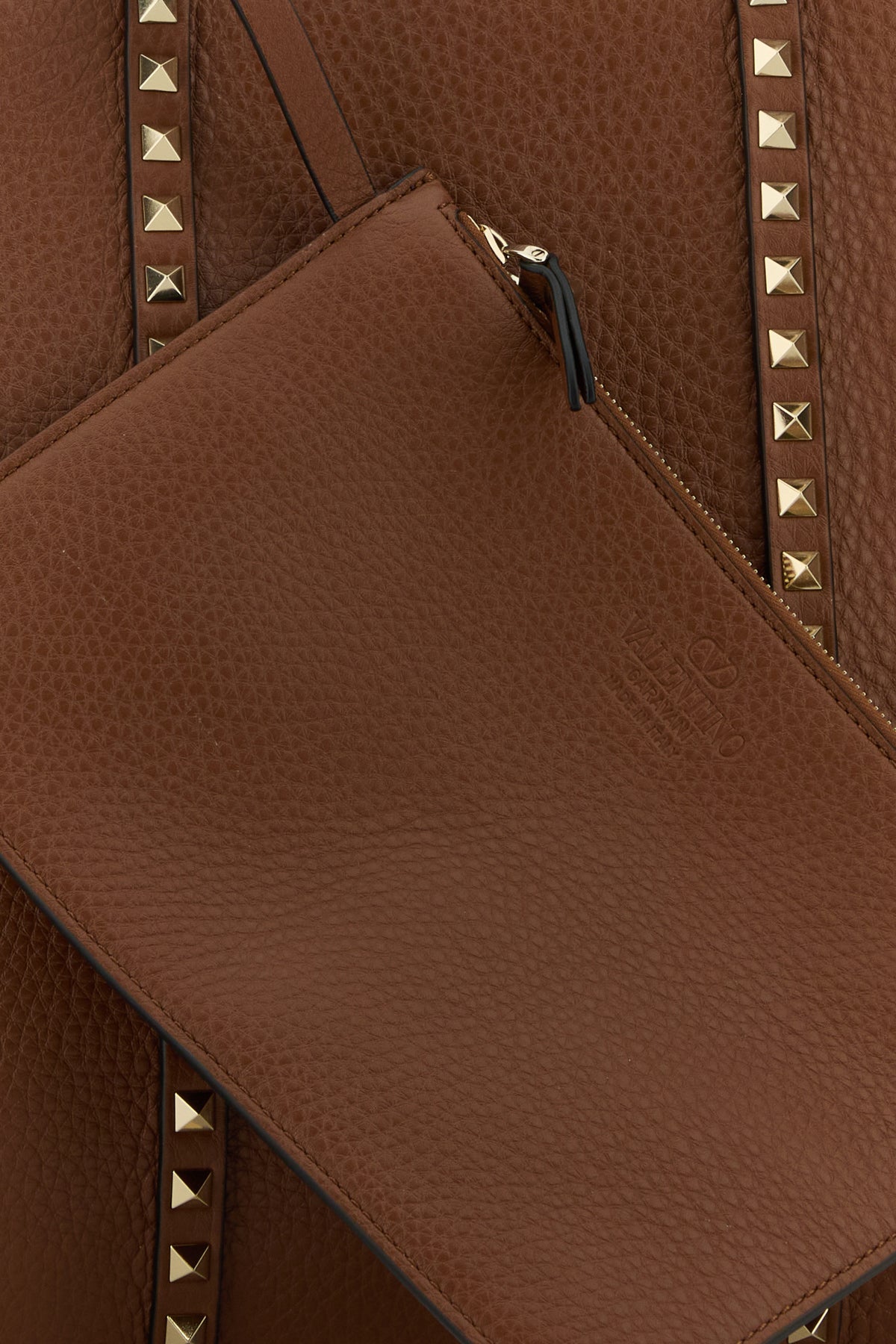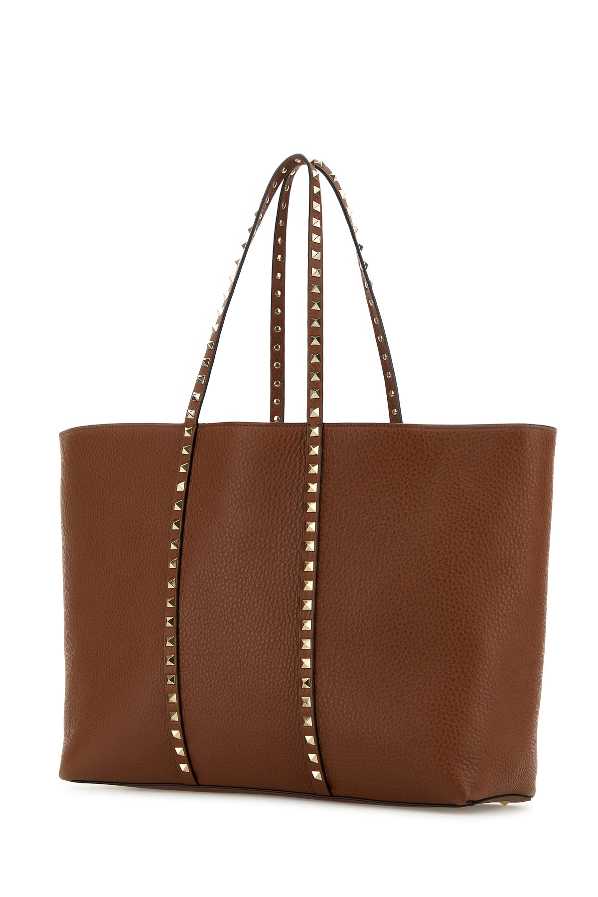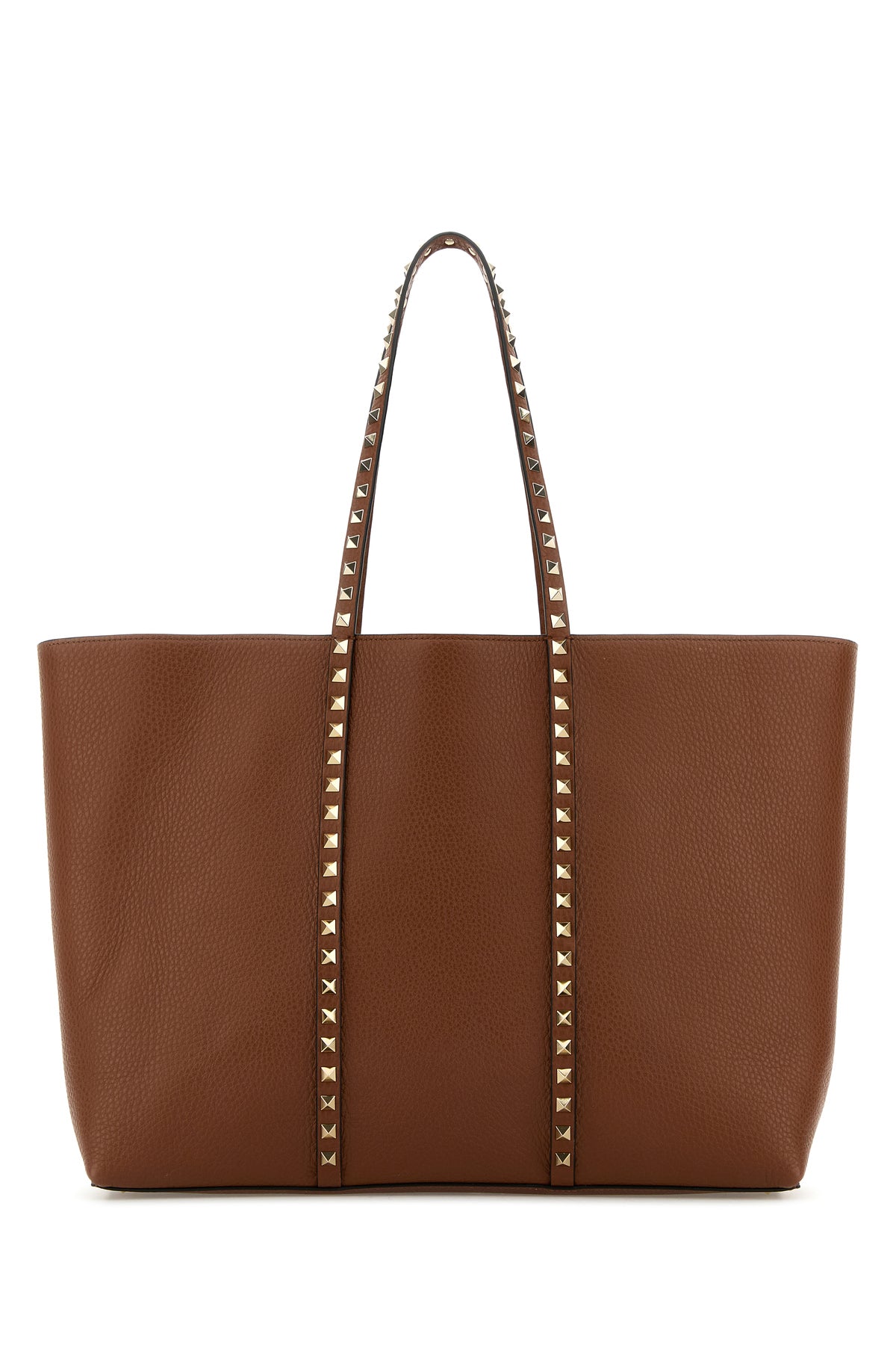 Shopping bag realized in pebble calf leather enriched by metal studs at the front, on the handles and at the back.