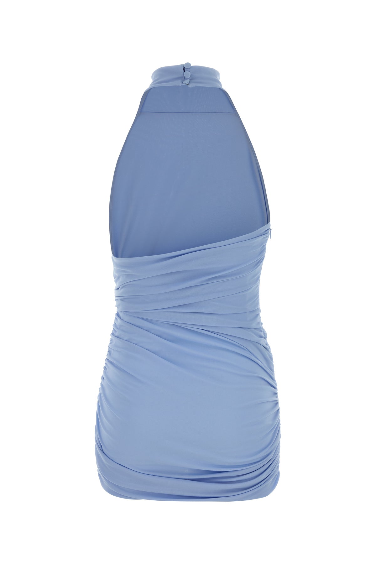 Mini dress realized in jersey characterized by gathering at the waist.