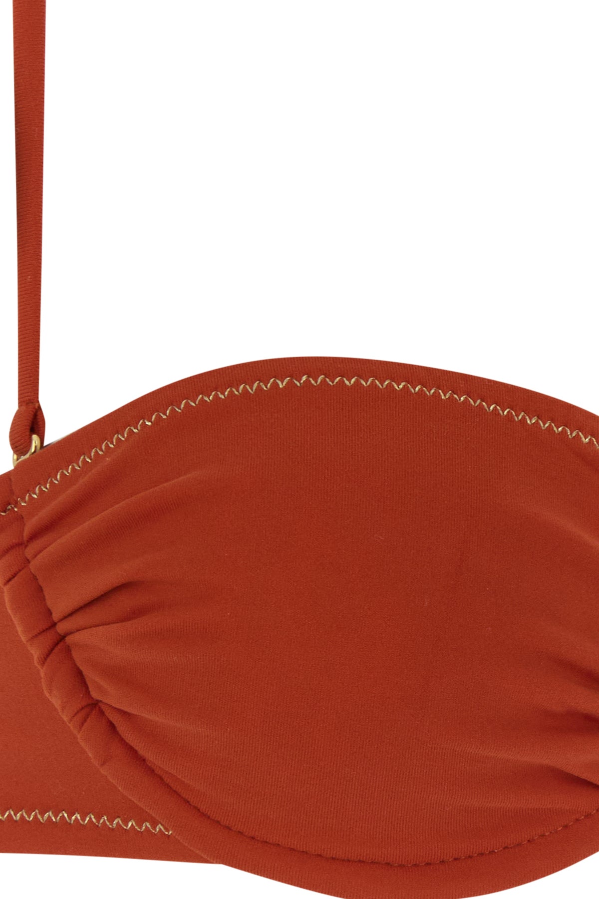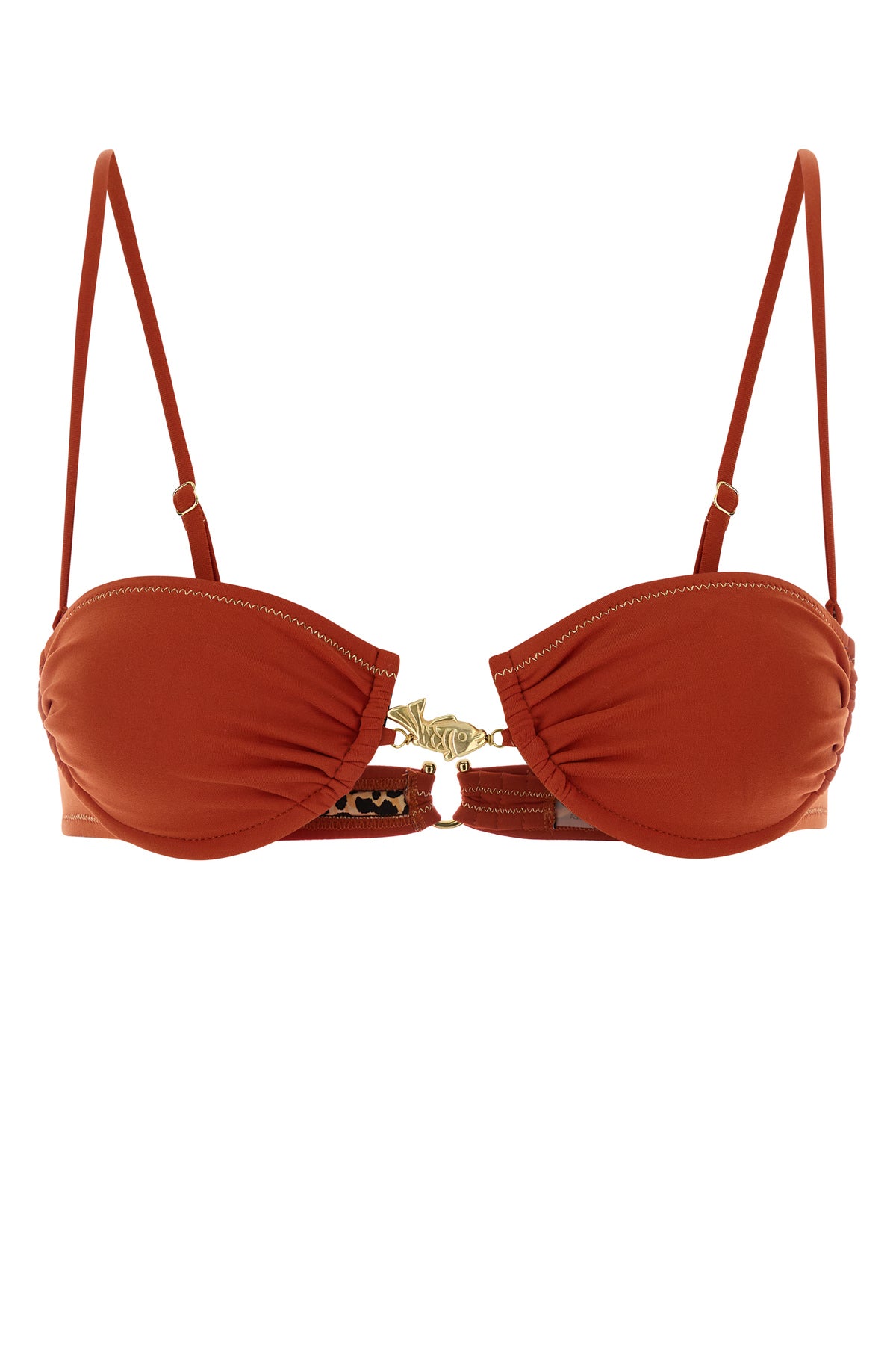 Balcony bikini top realized in stretch nylon enriched by metal detail at the front.