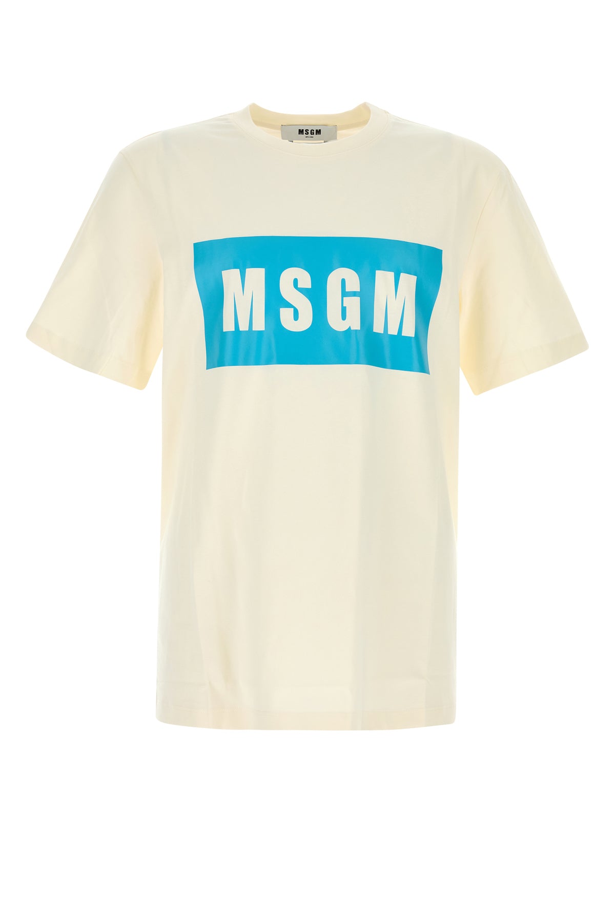 T-shirt realized in pure cotton characterized by contrasting logged print on the chest.