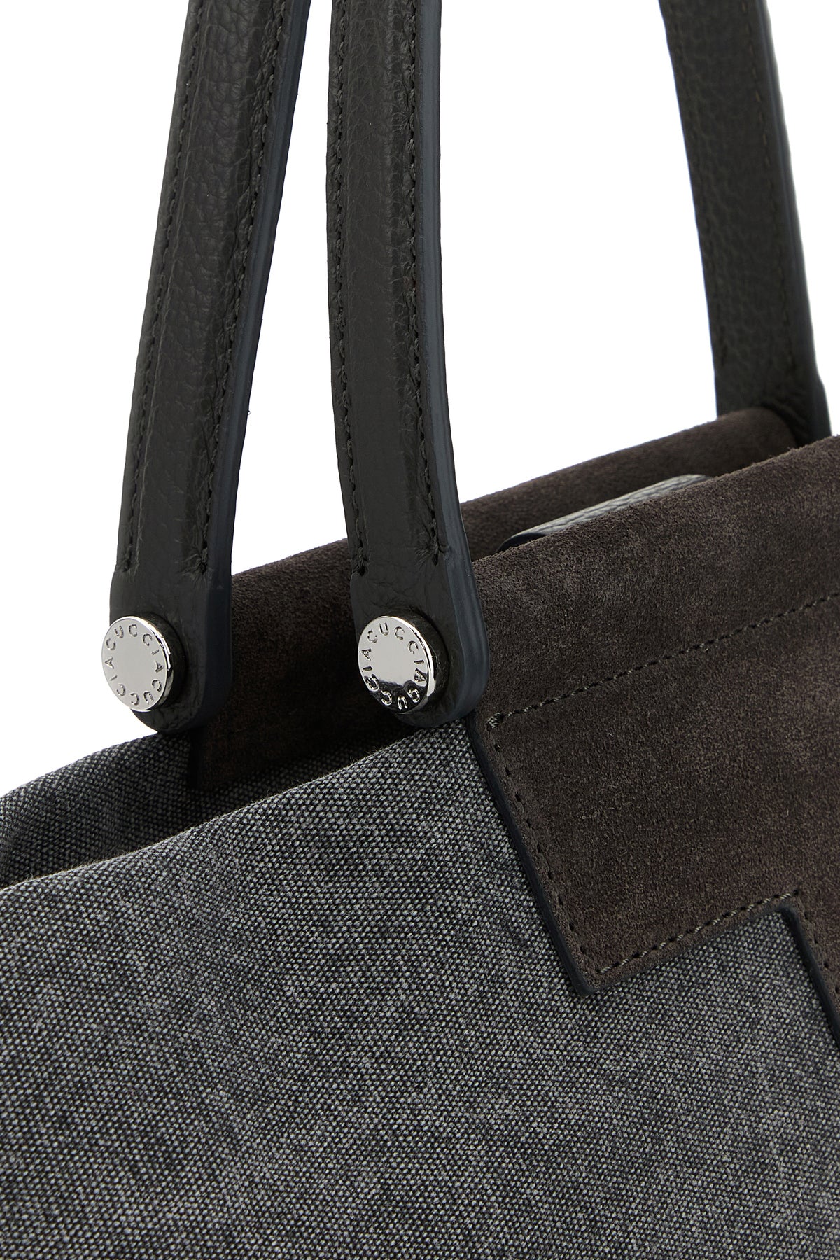 Handbag realized in canvas enriched by suede patch at the front and at the back.