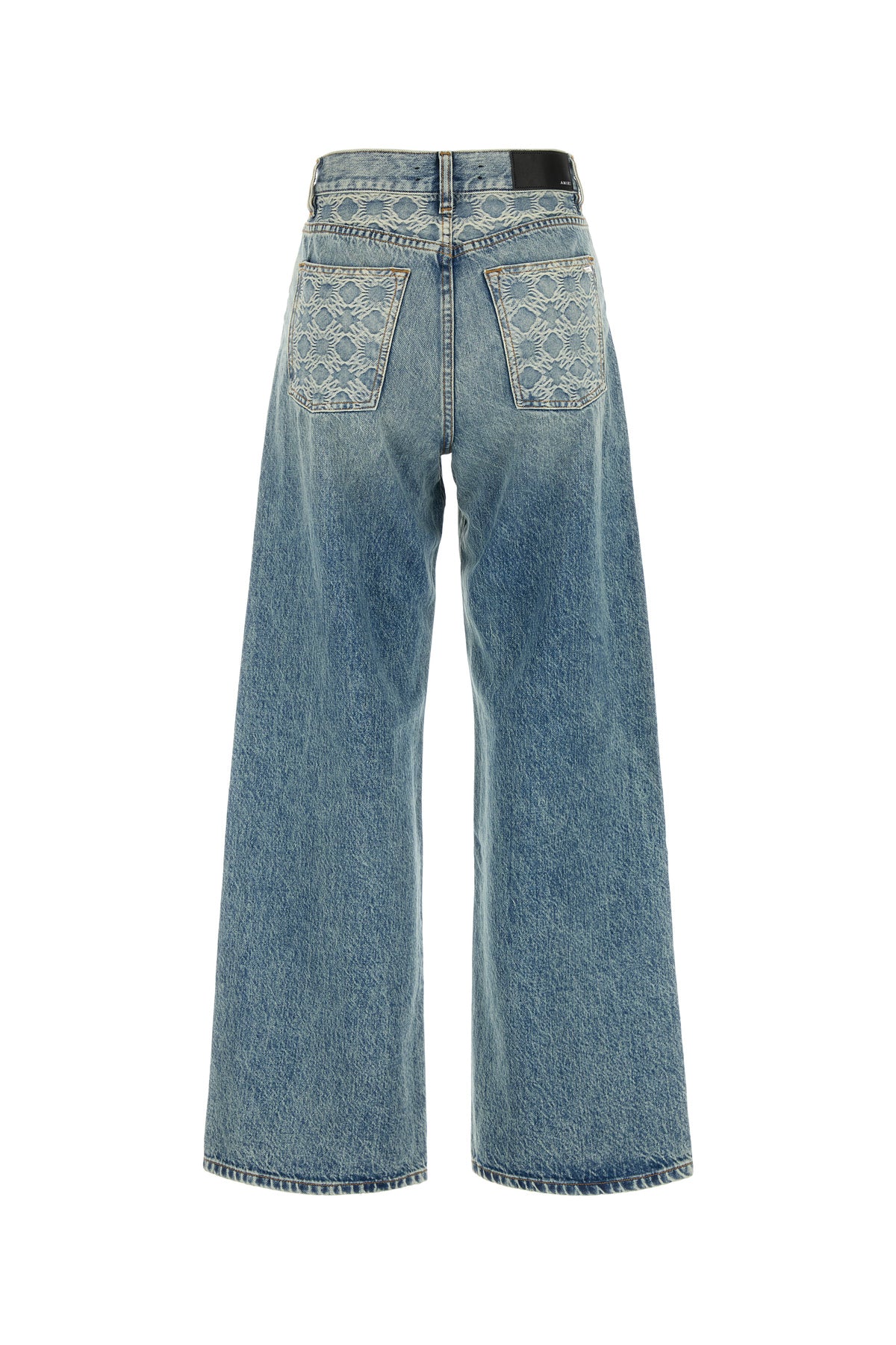 Regular jeans realized in stonewashed pure cotton denim characterized by MA Quad embroidery at the top.