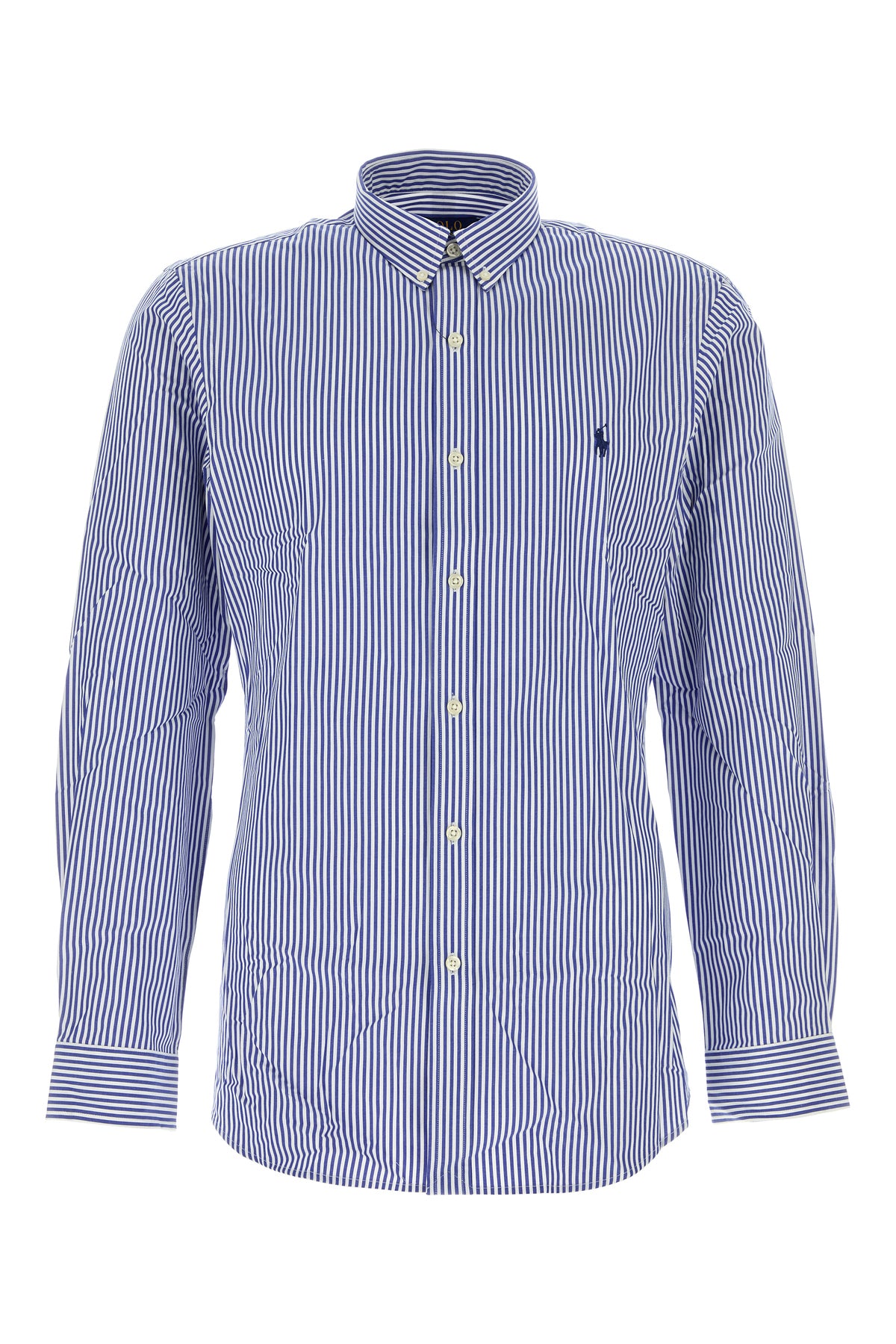 Shirt realized in stretch cotton poplin characterized by iconic embroidered logo on the chest and striped embroidery on the entire surface.