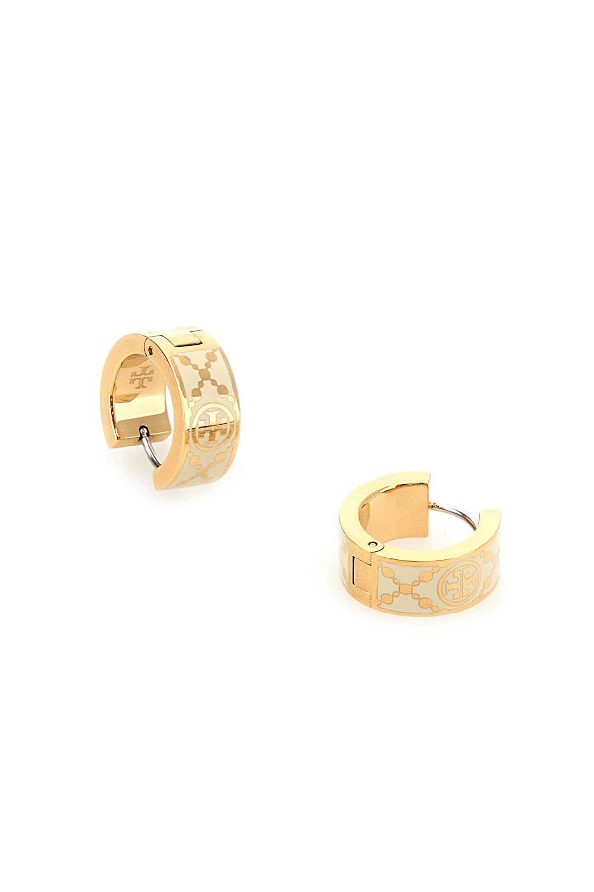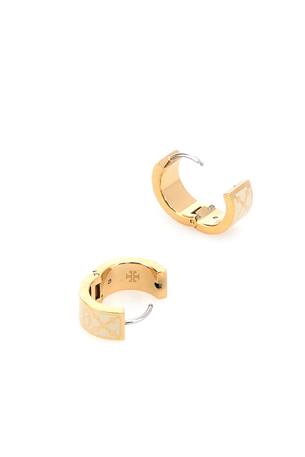 Hoop earrings realized in gold-tone plated metal characterized by printed logo.