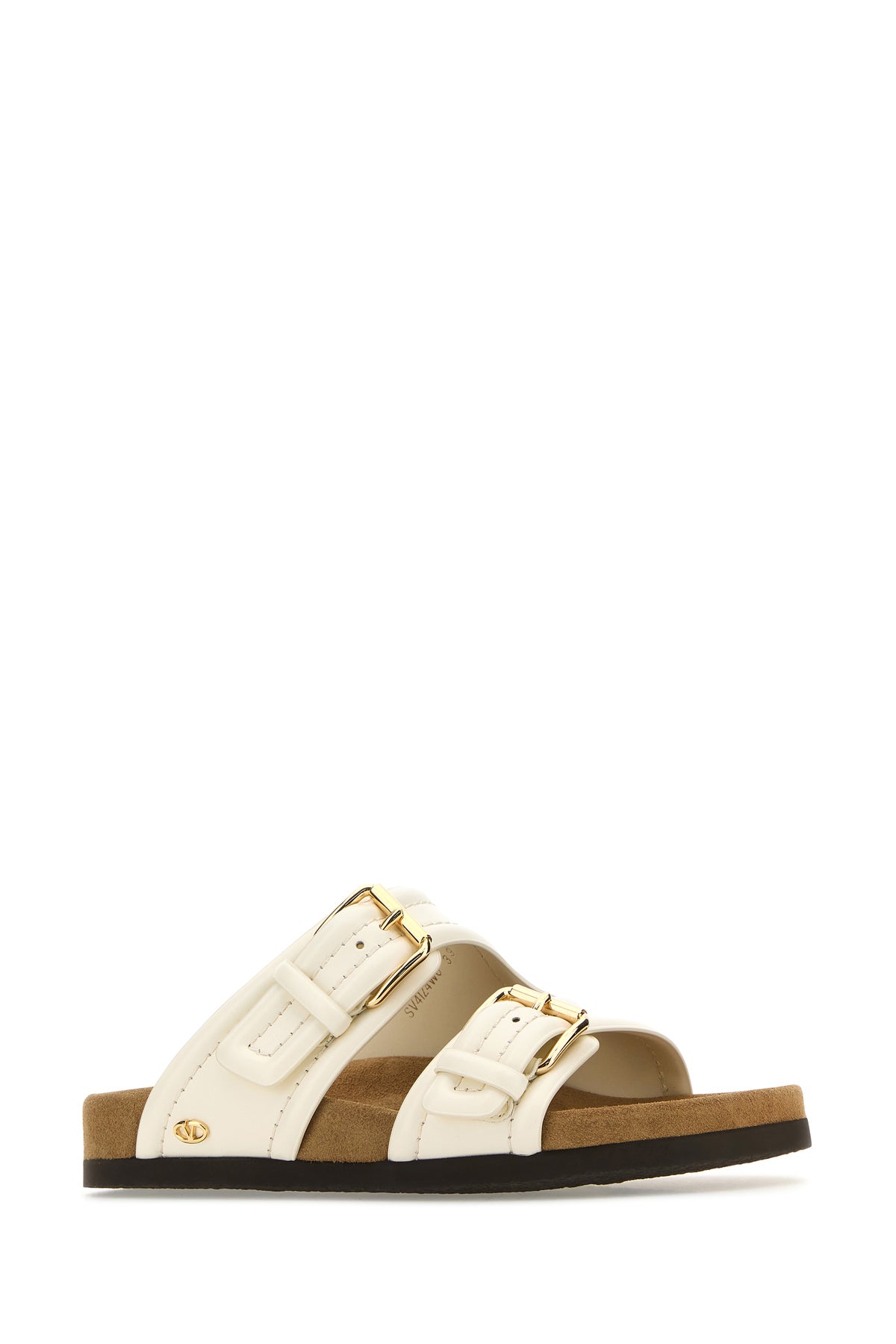 Slippers realized in smooth calf leather enriched by VLogo Signature metal detail on the side.