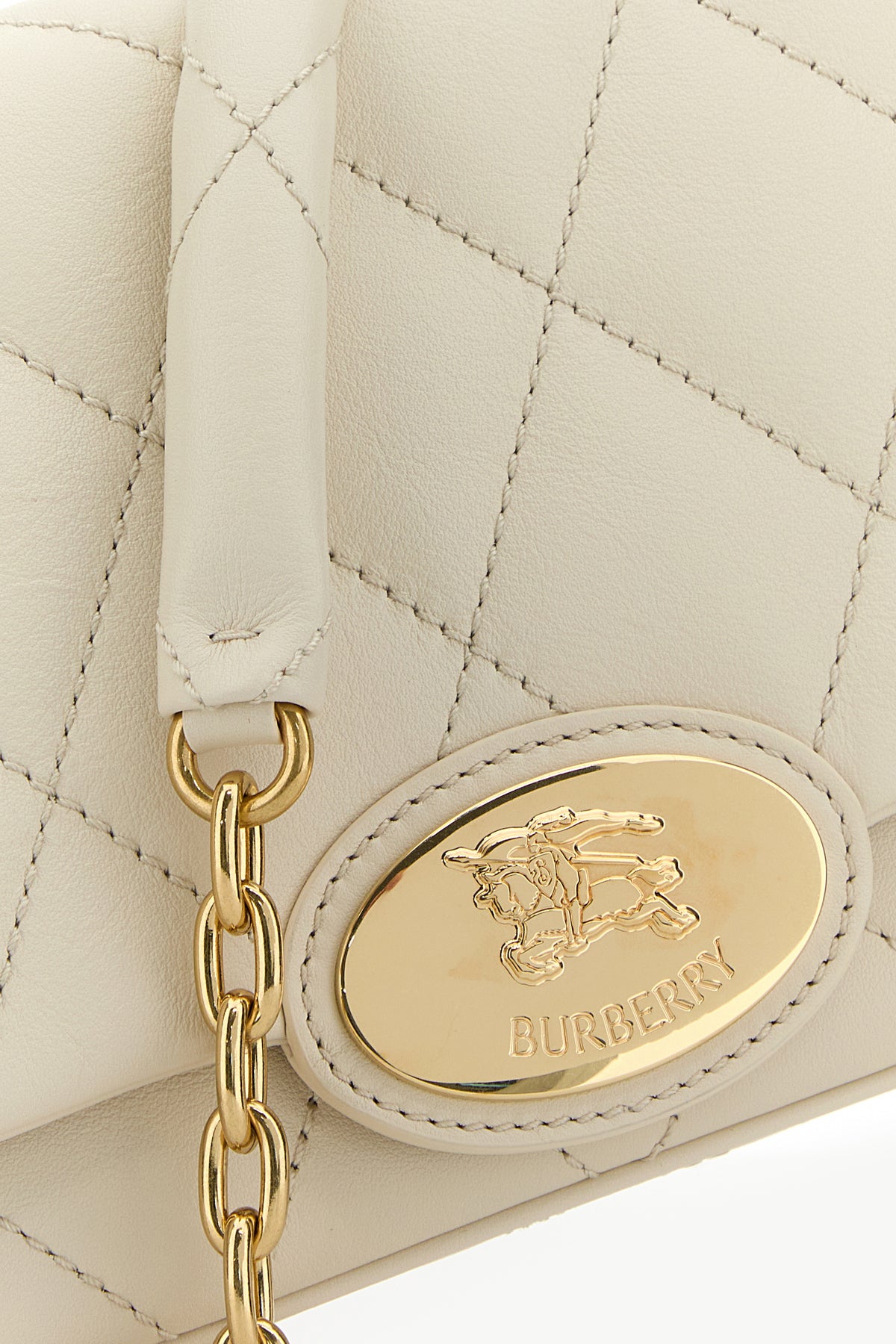 Shoulder bag realized in quilted calf leather enriched by metal Knight Stamp detail on the flap.