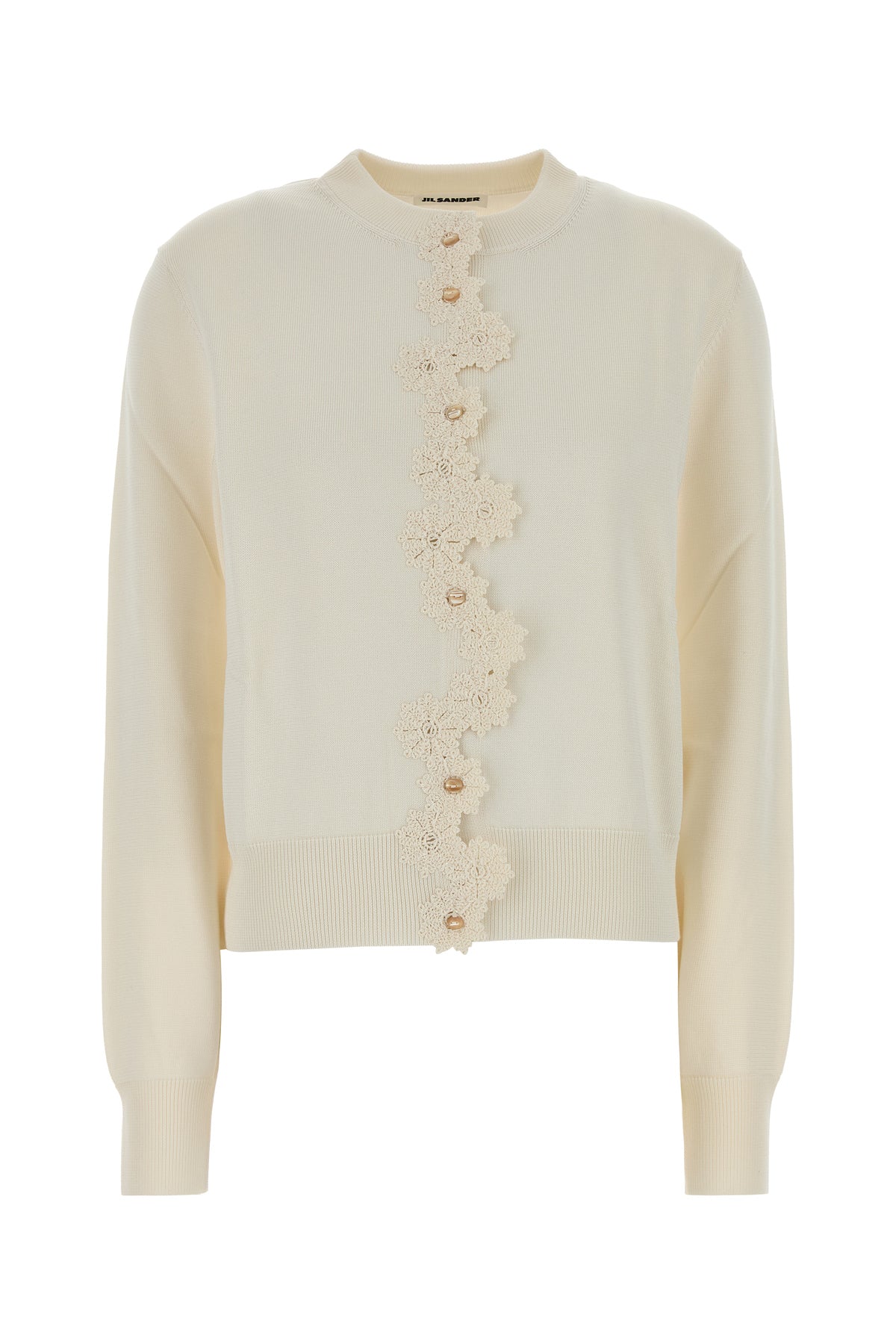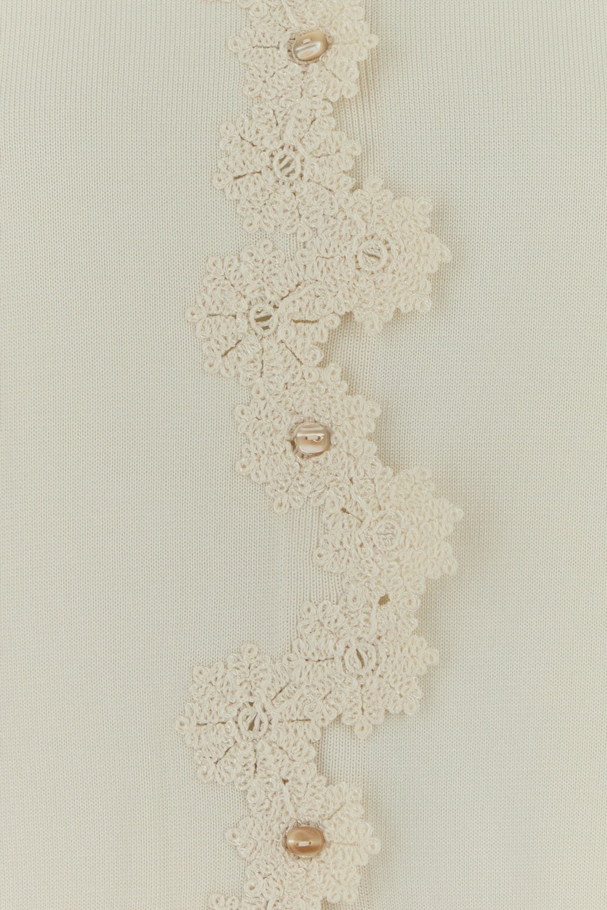 Cardigan realized in stretch viscose blend characterized by floral patch on the buttons closure.