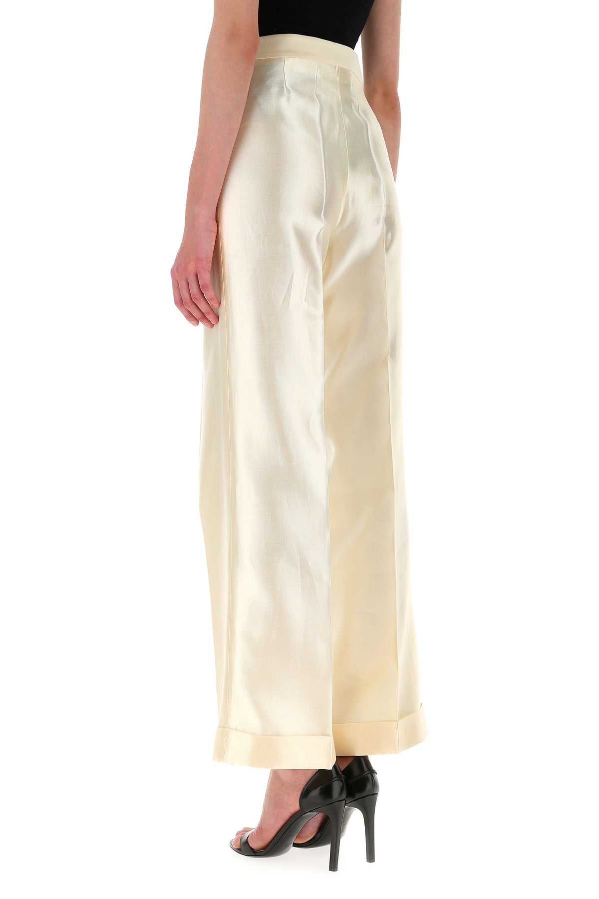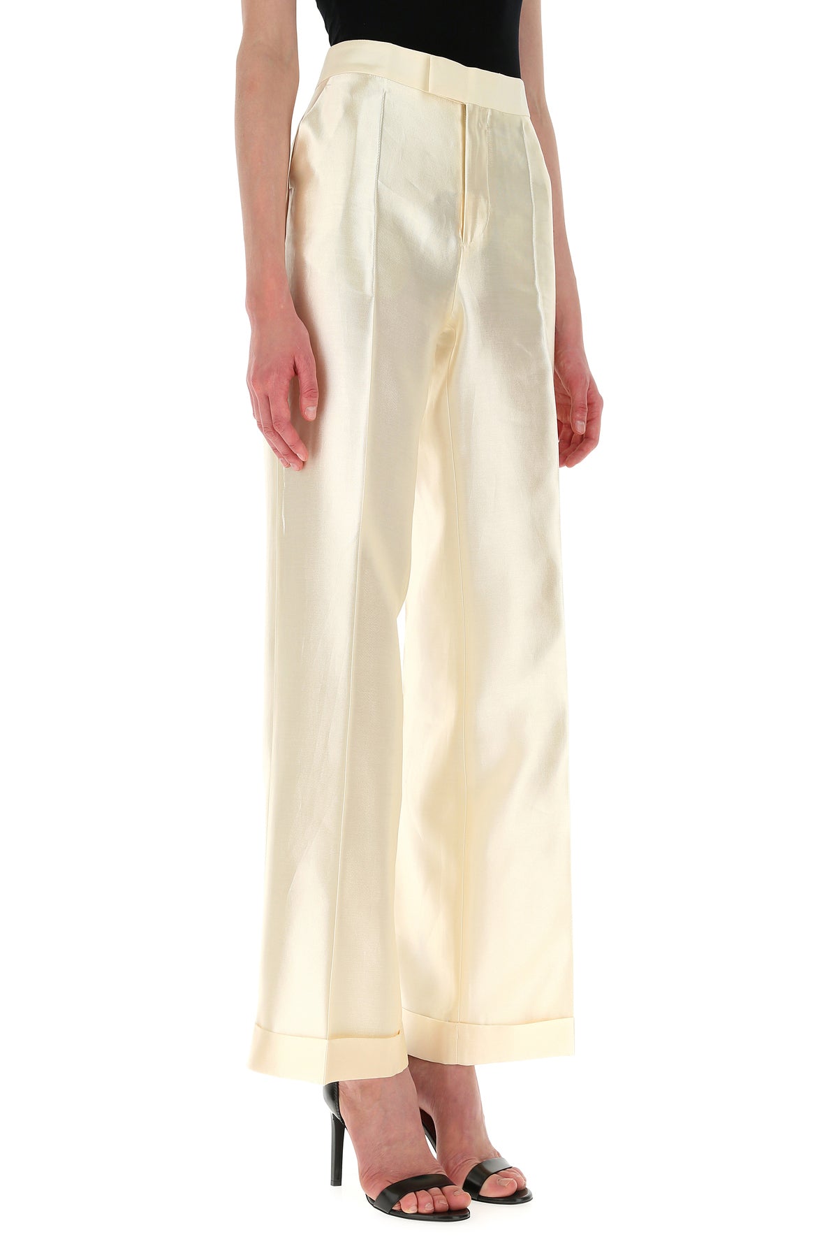 ivory viscosa blend wide-leg pant