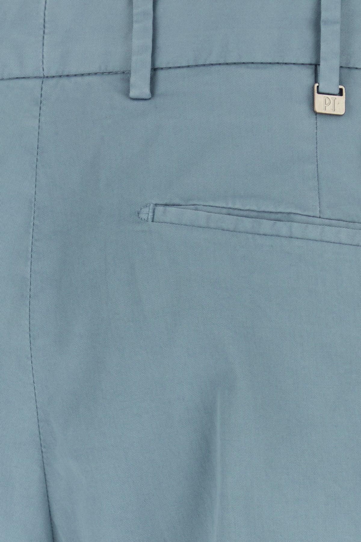 Pant realized in stretch cotton enriched by logoed metal plate at the back.