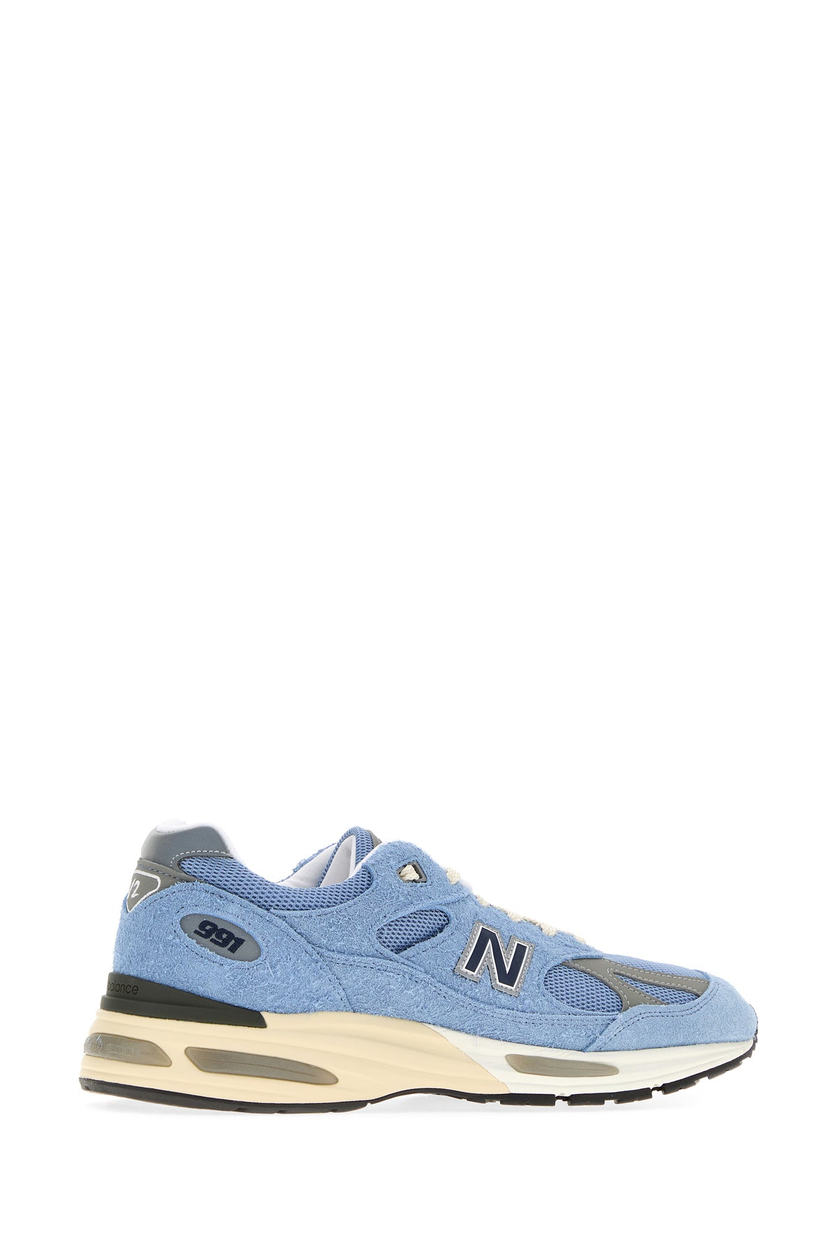 Light blue suede and mesh 991V2 sneakers