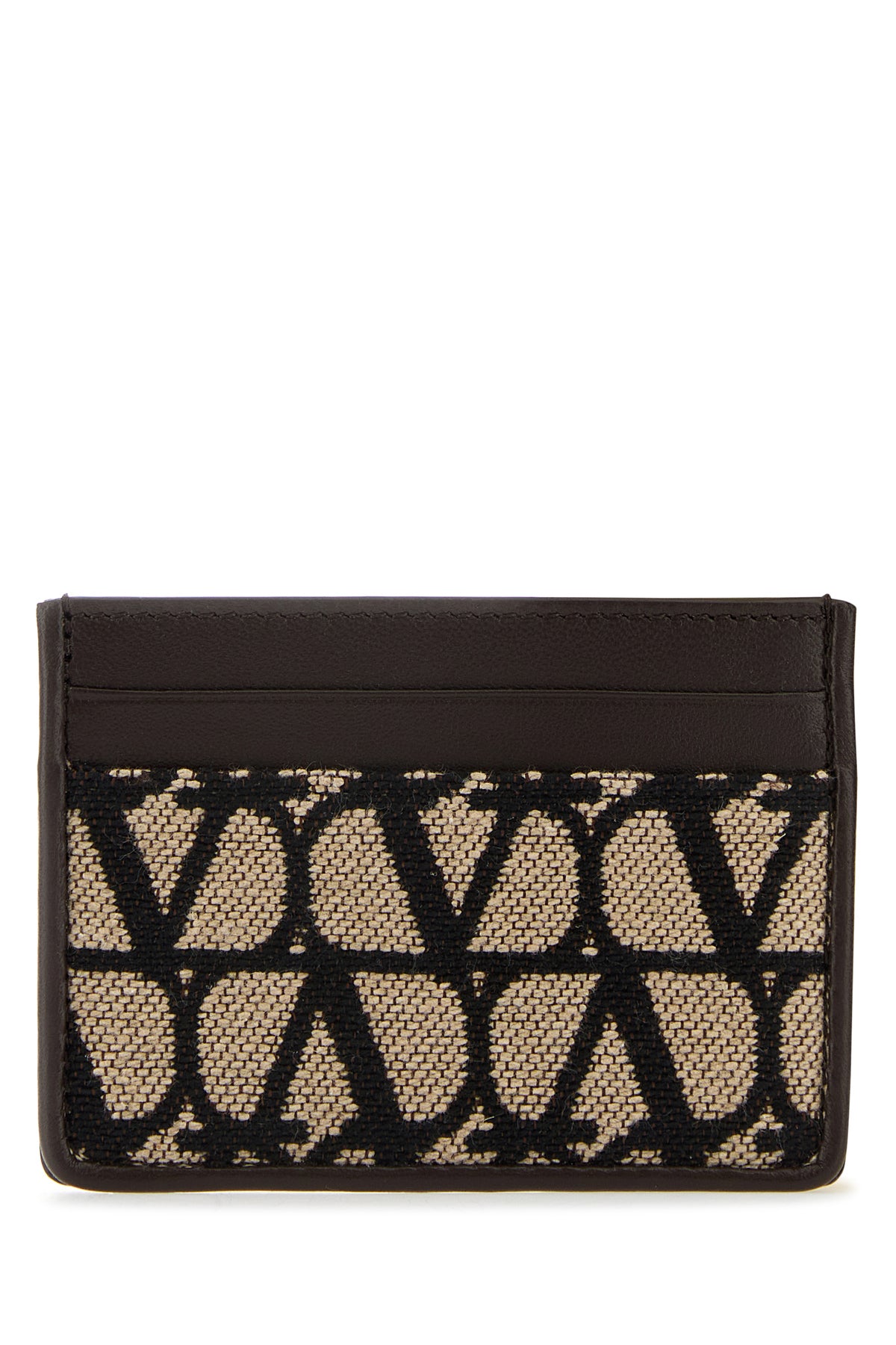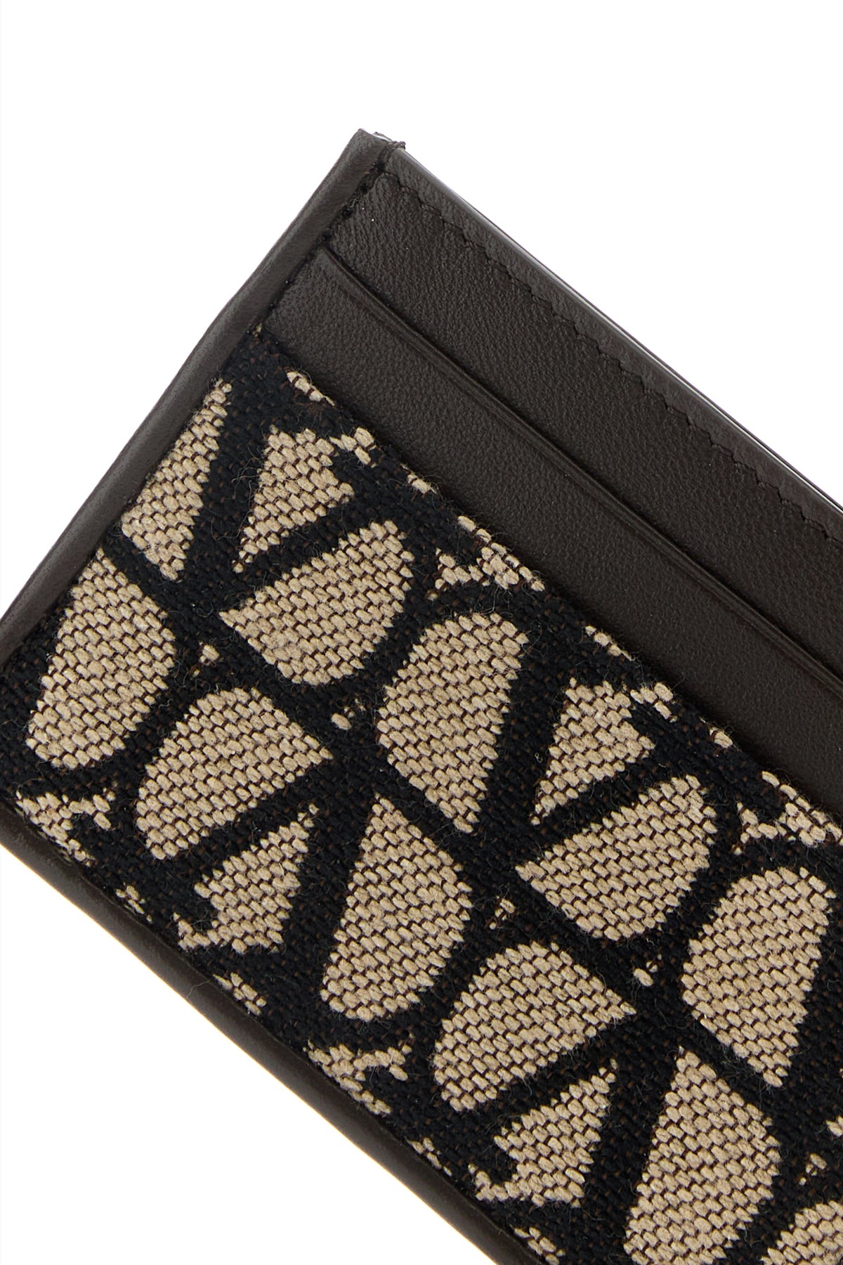 Card holder realized in slightly pebble calf leather and Toile Iconographe fabric.