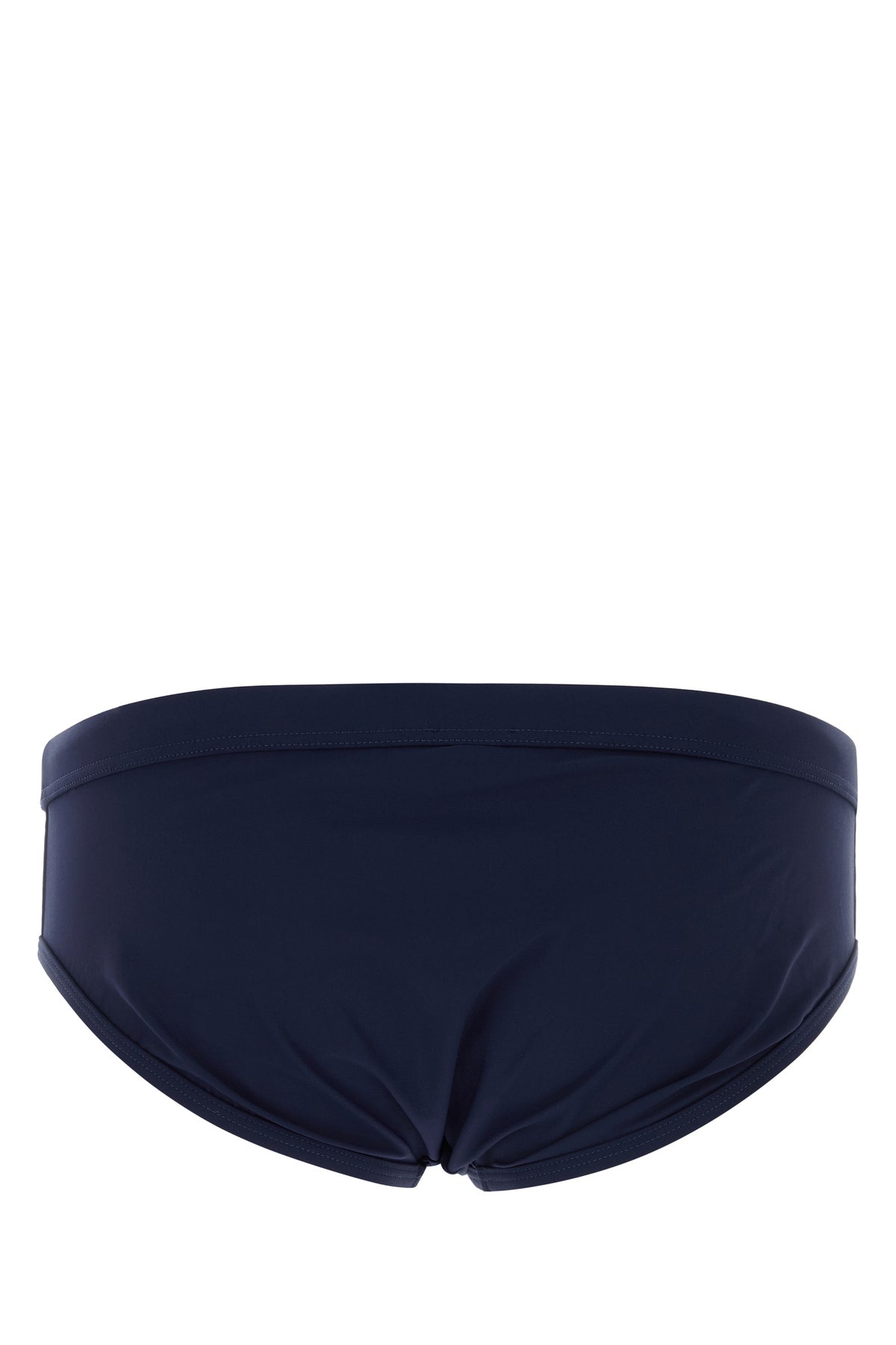 Swimming brief realized in stretch nylon enriched by logoed metal plate on the side.