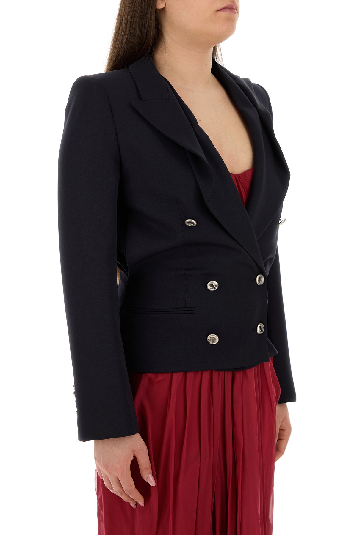 Short-cut blazer realized in pure wool.