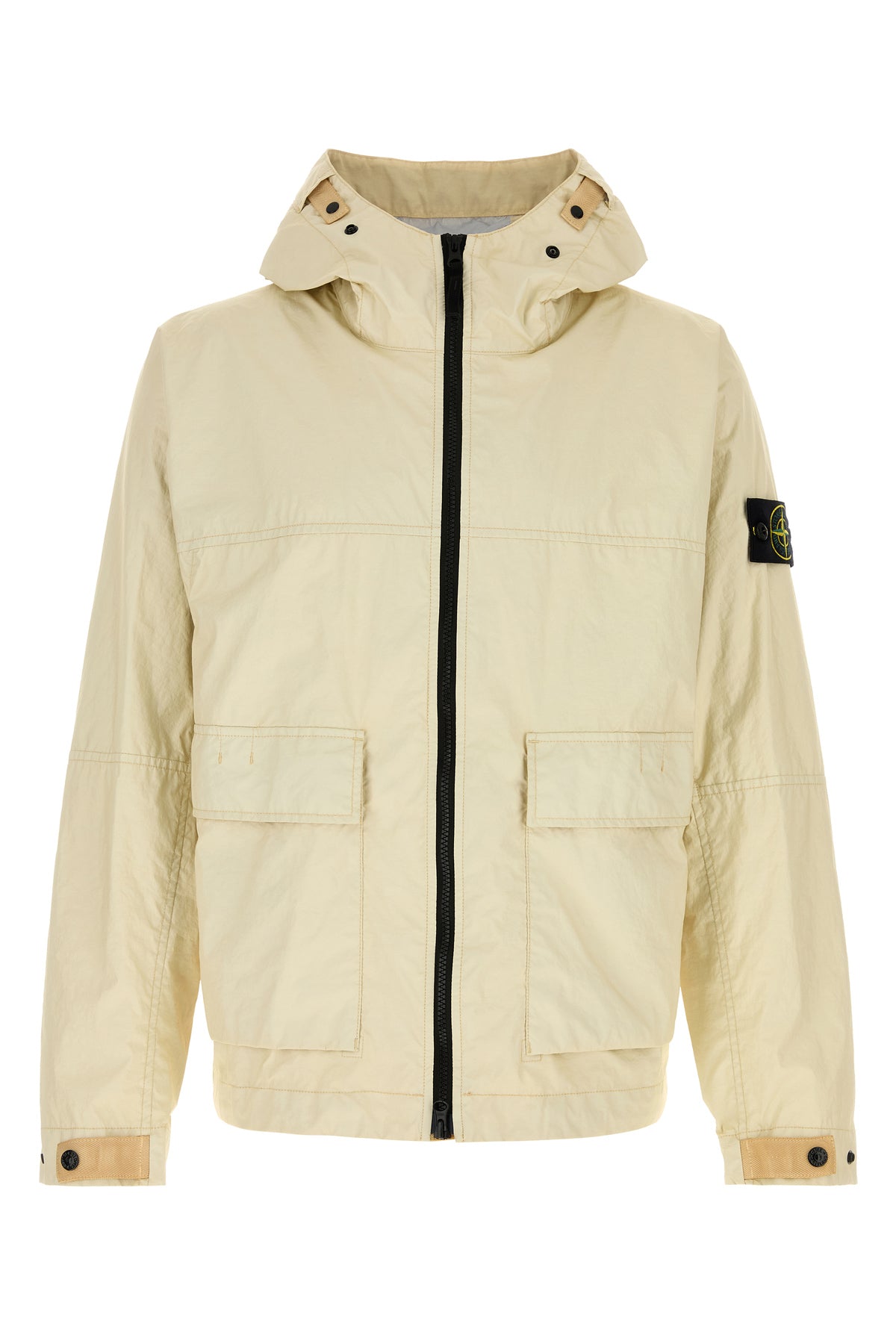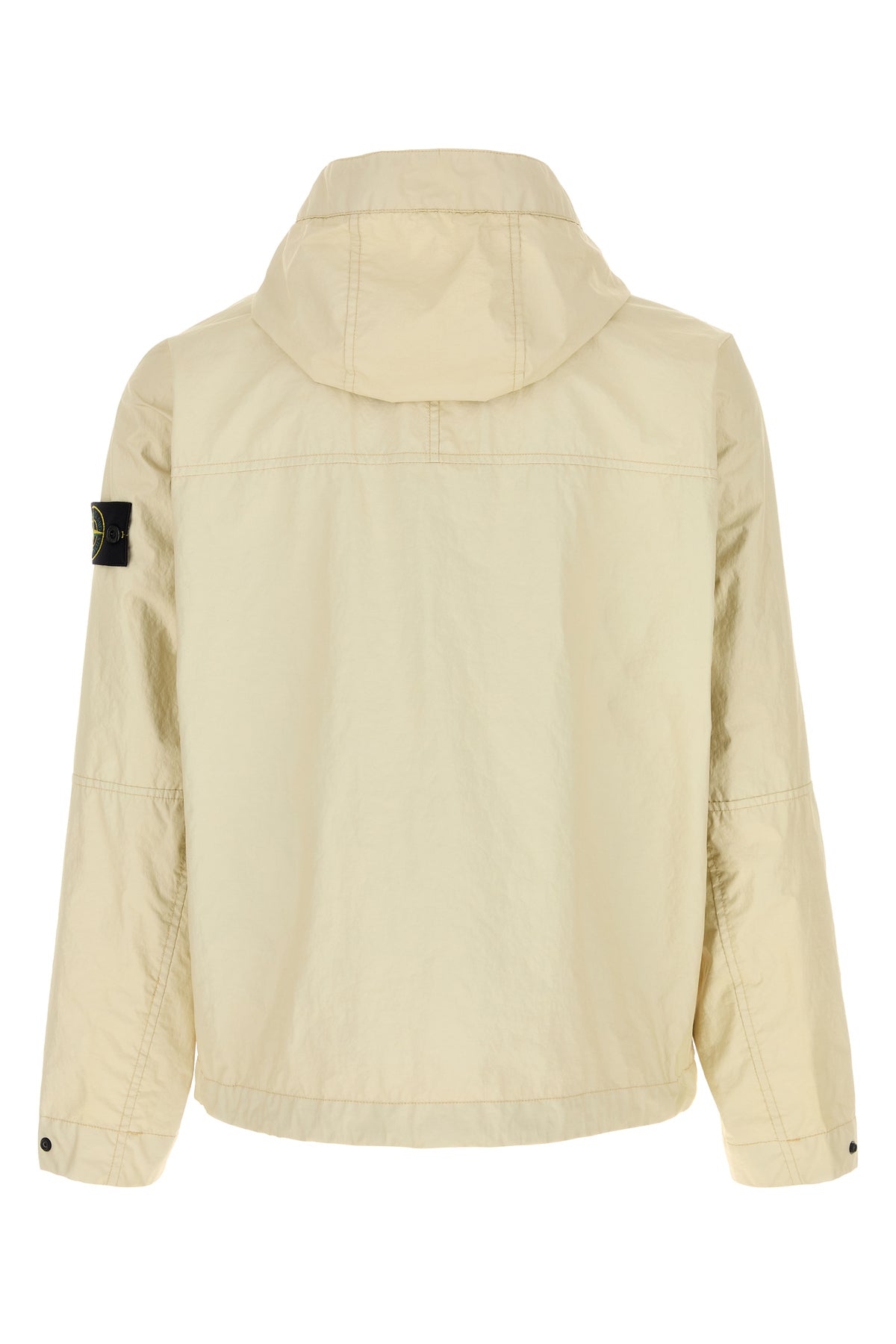 Jacket realized in nylon enriched by detachable logoed label on the sleeve.