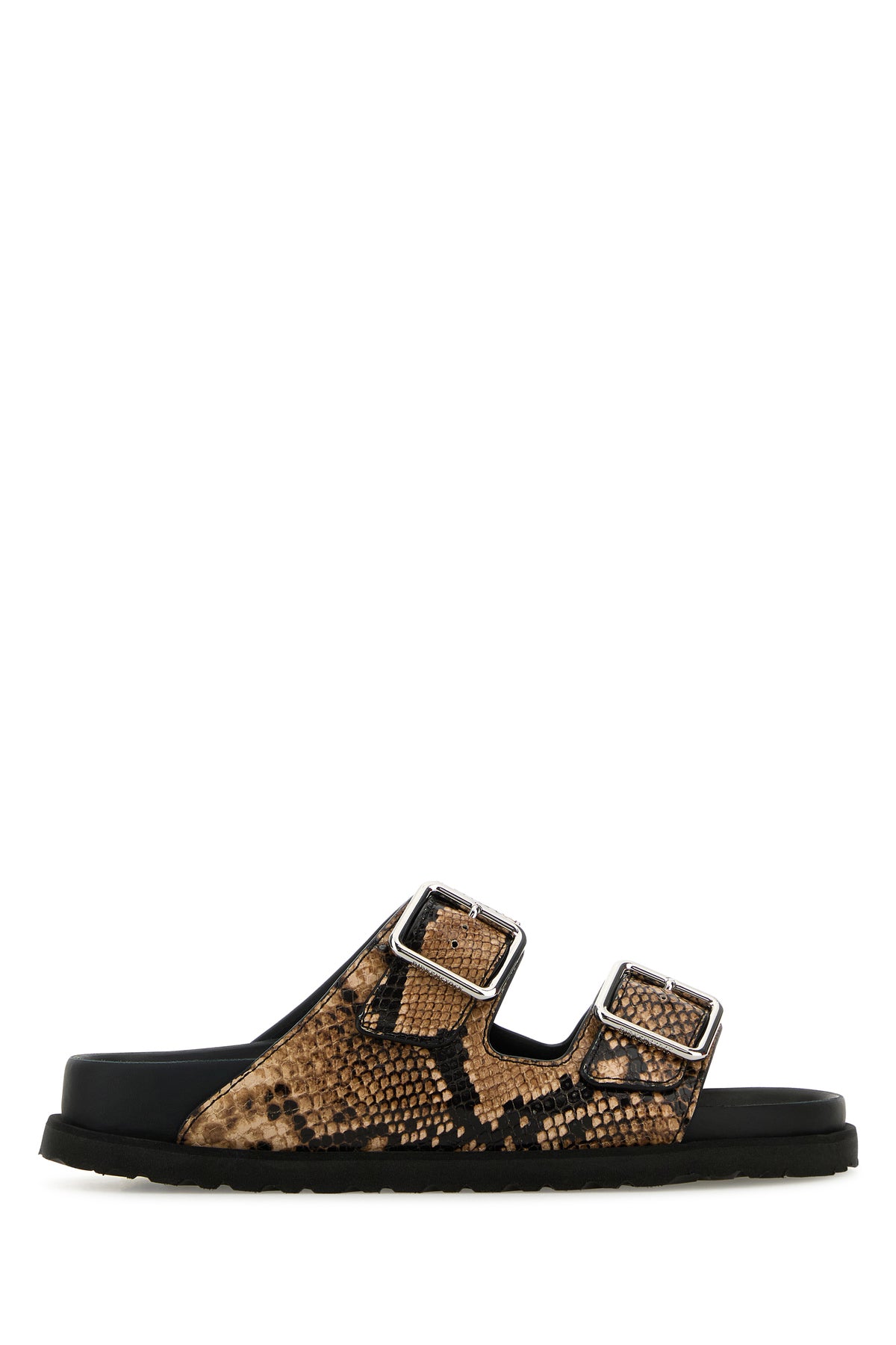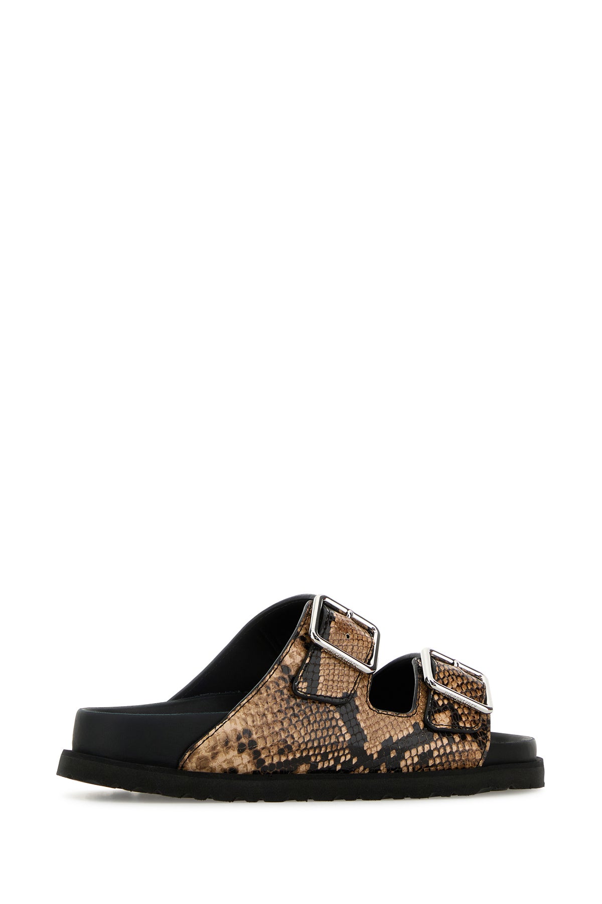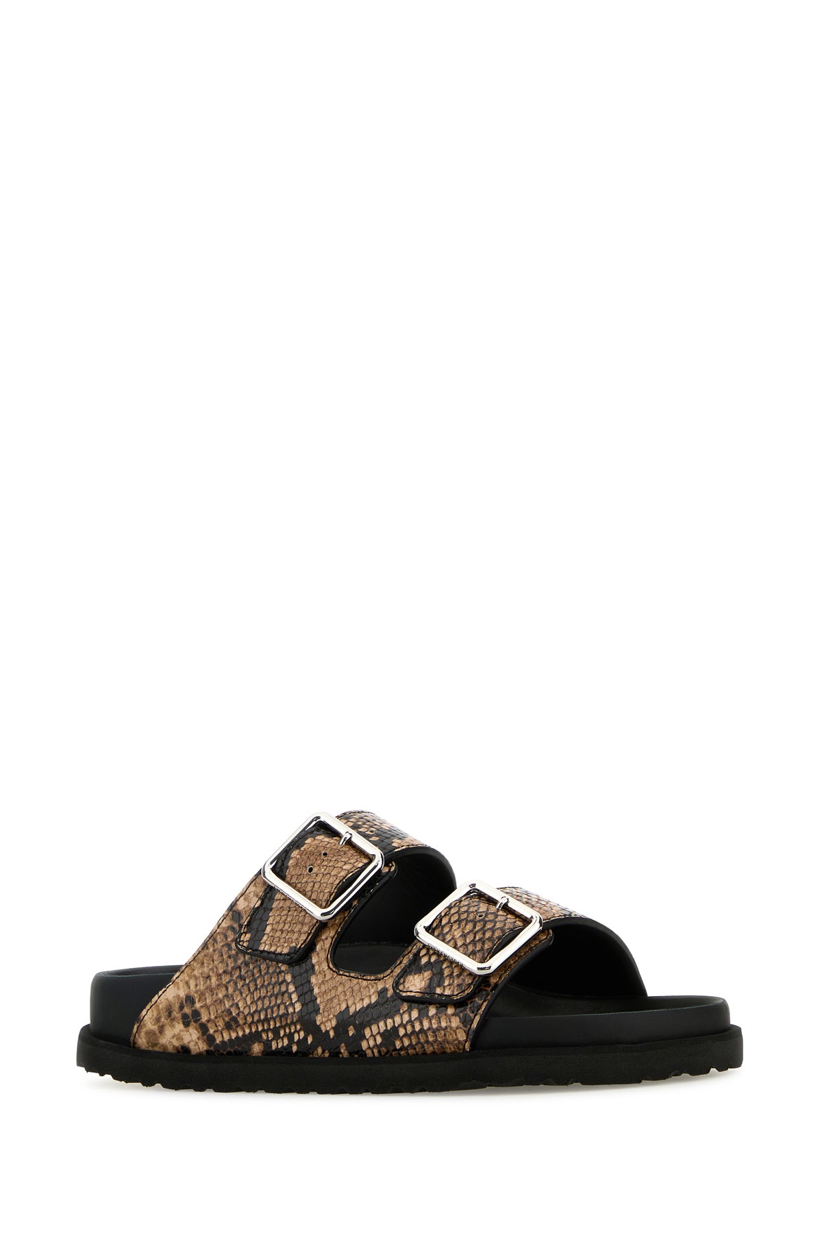 Slippers realized in leather characterized by crocodile motif print on the entire surface and printed logo on the side.