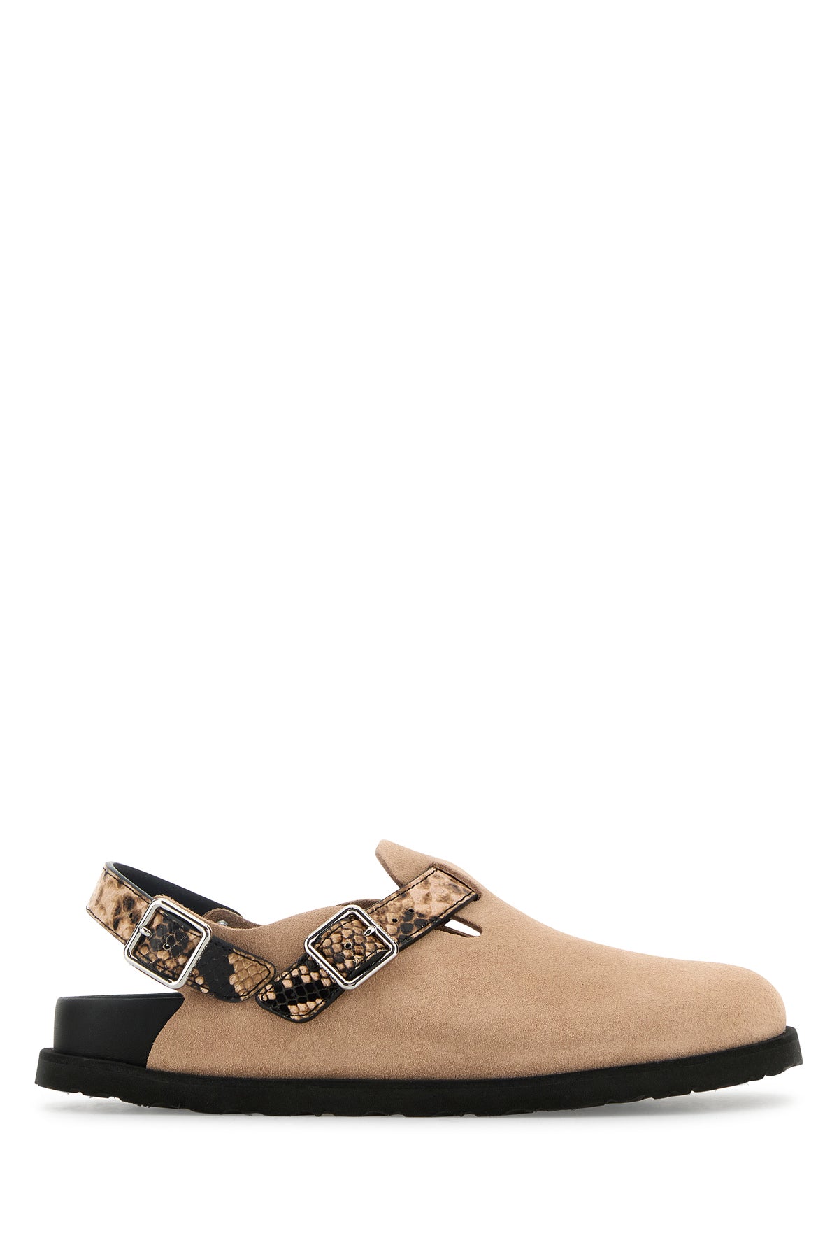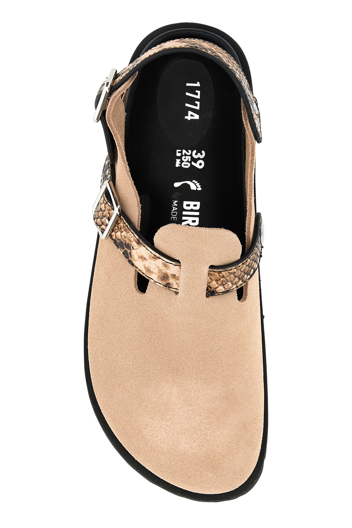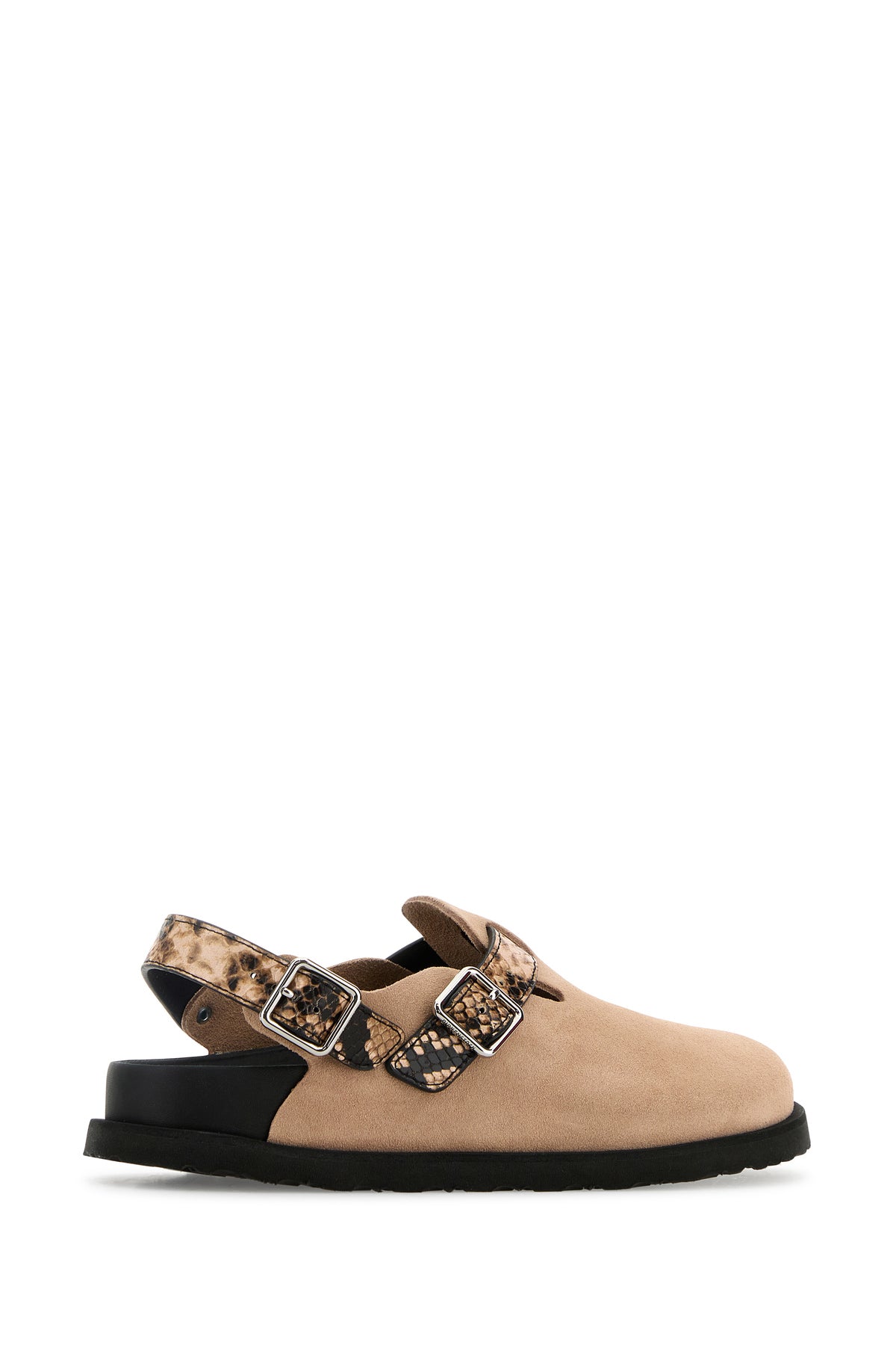 Slippers realized in leather characterized by crocodile motif print on the entire surface and printed logo on the side enriched by adjustable strap on the instep.
