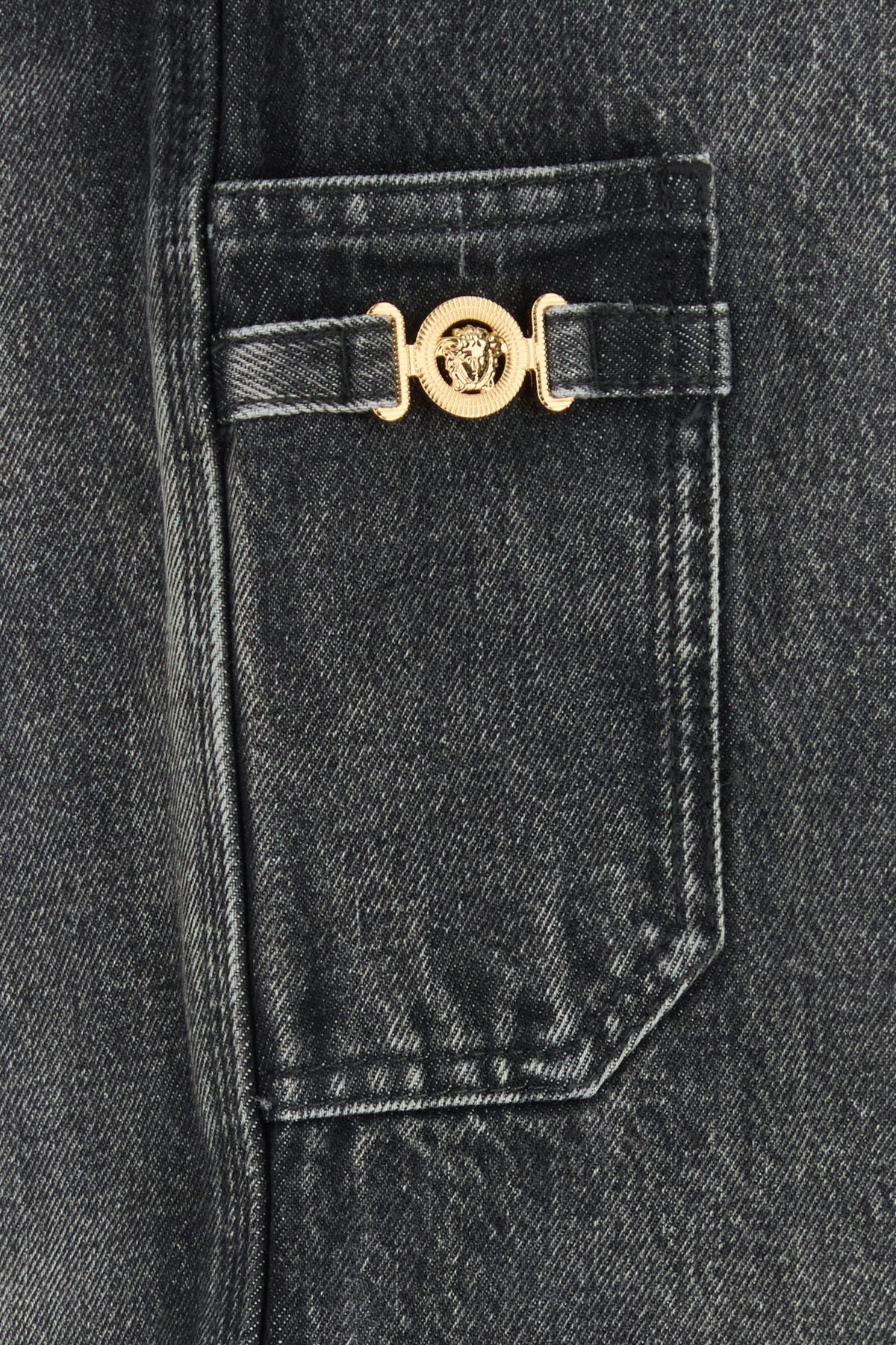 Jeans realized in stonewashed pure cotton denim enriched by contrasting logoed label at the back.