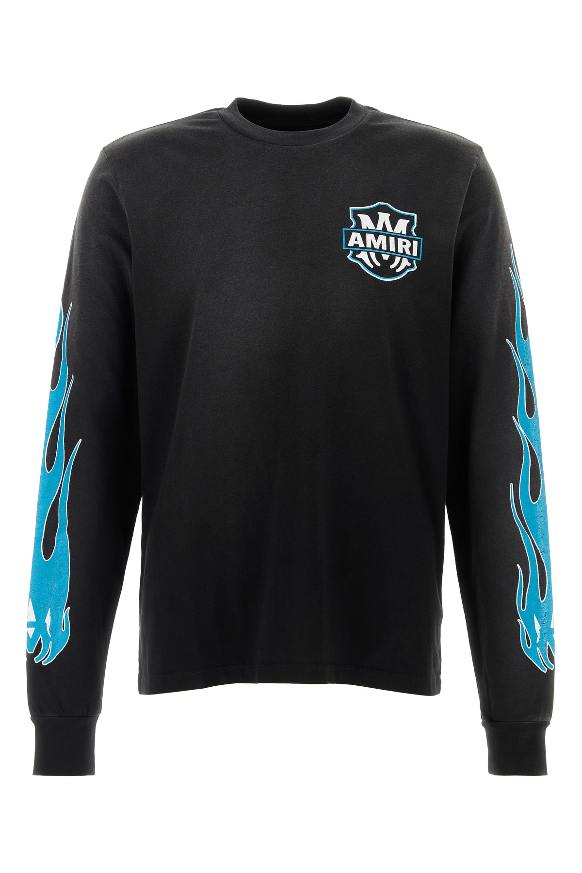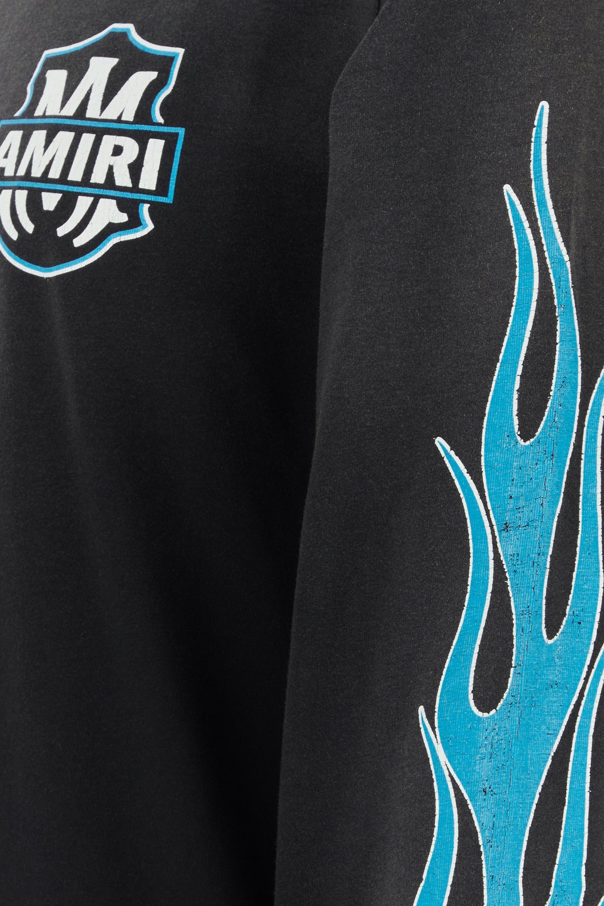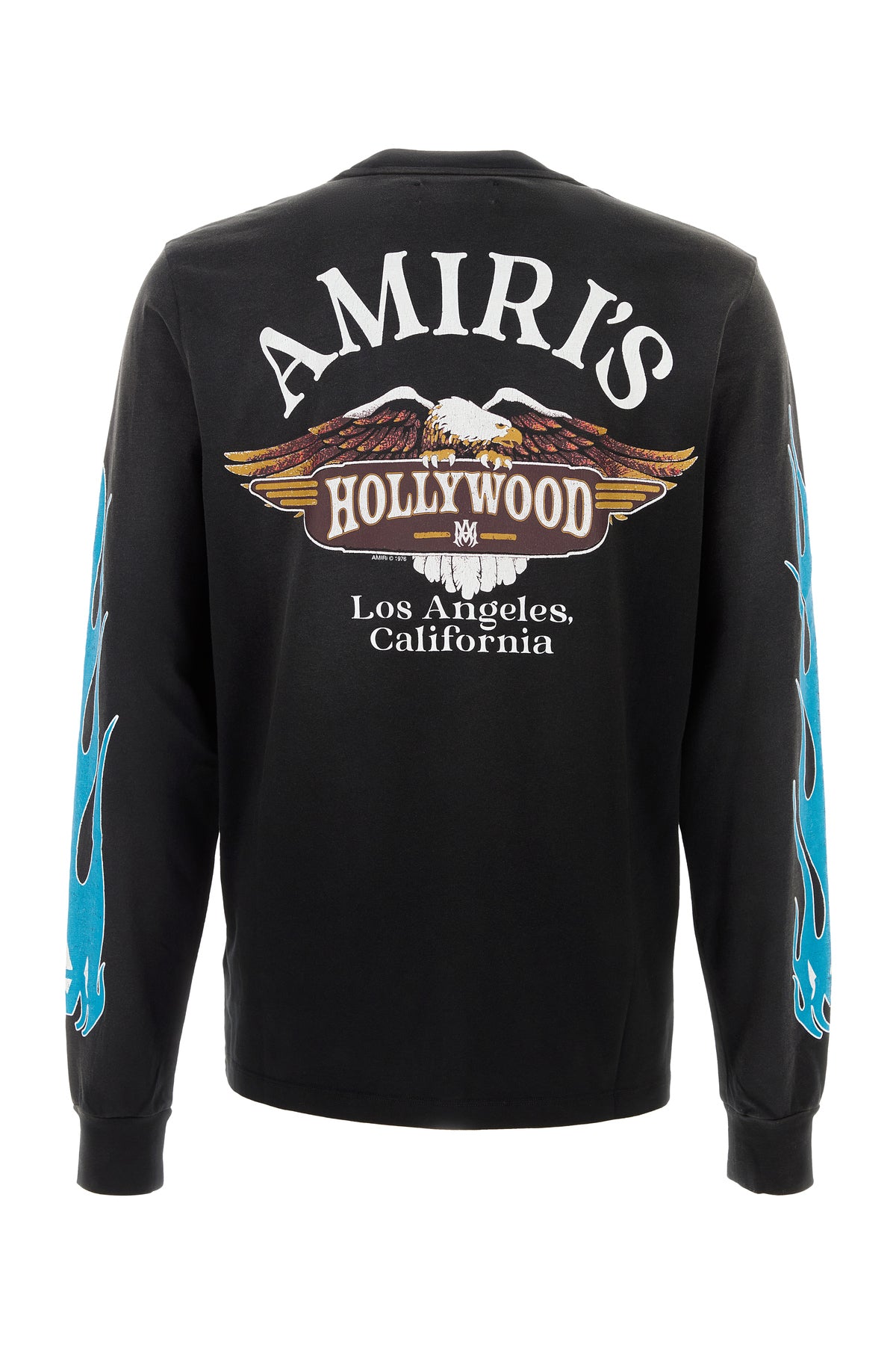Long-sleeves t-shirt realized in stonewashed effect pure cotton characterized by Amiri Eagle Flames print on the chest, at the back and on the sleeves.
