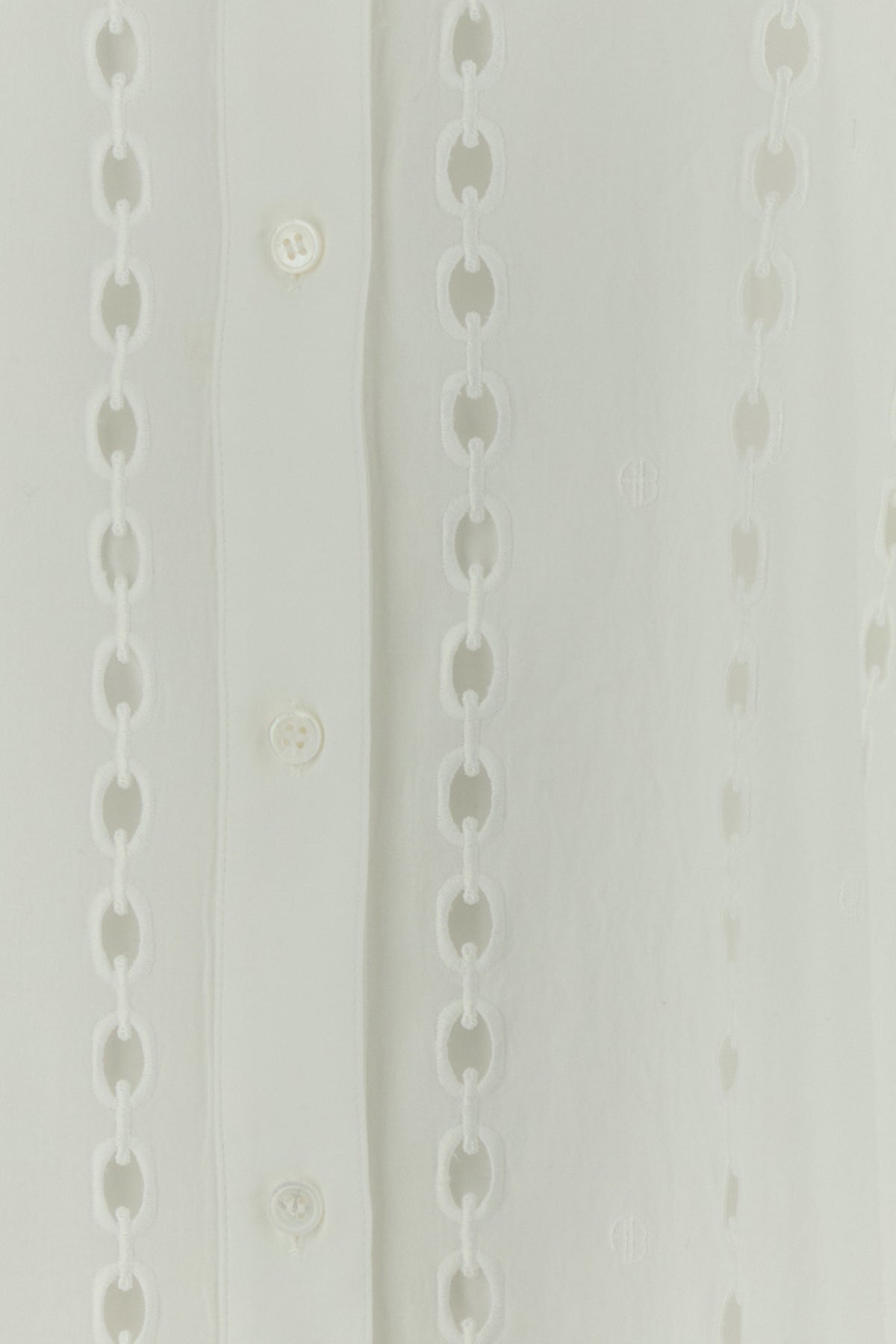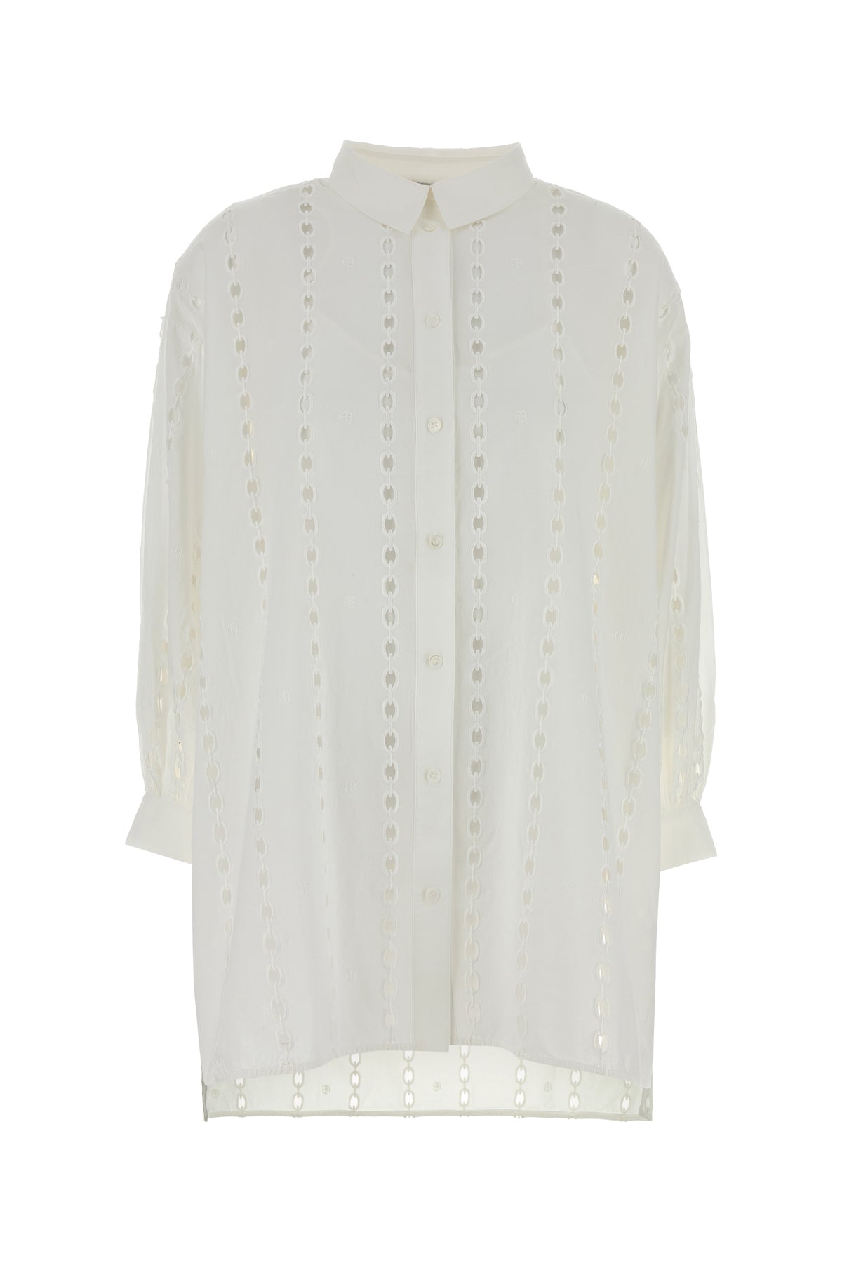 Shirt dress realized in pure cotton characterized by peculiar embroidery and tonal embroidered logo on the entire surface.