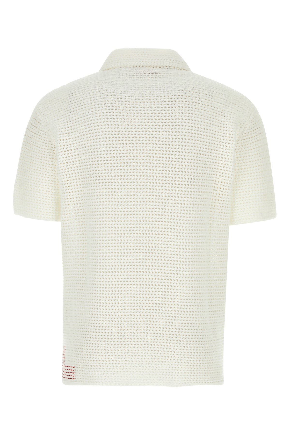 Polo shirt realized in pure cotton crochet characterized by peculiar contrasting embroidery on the hemline.