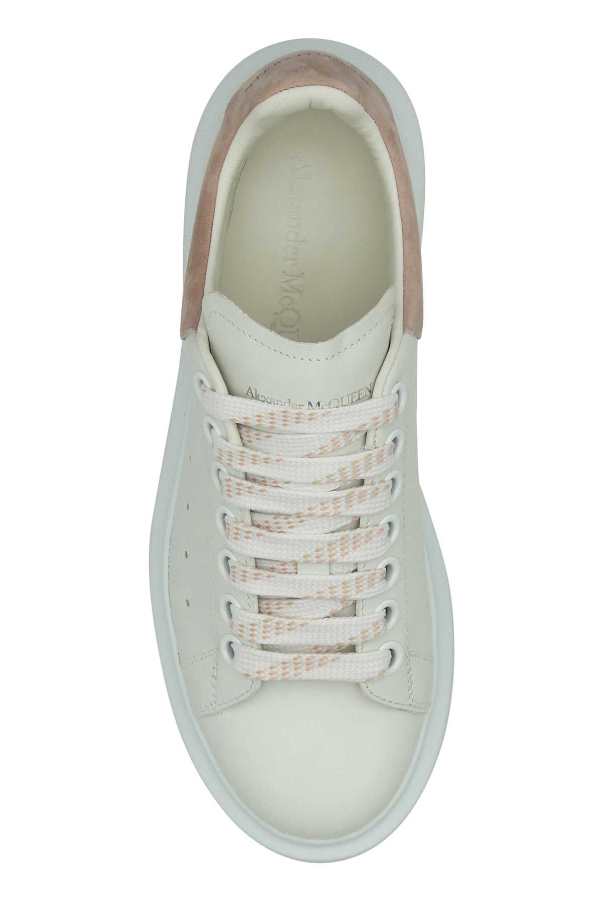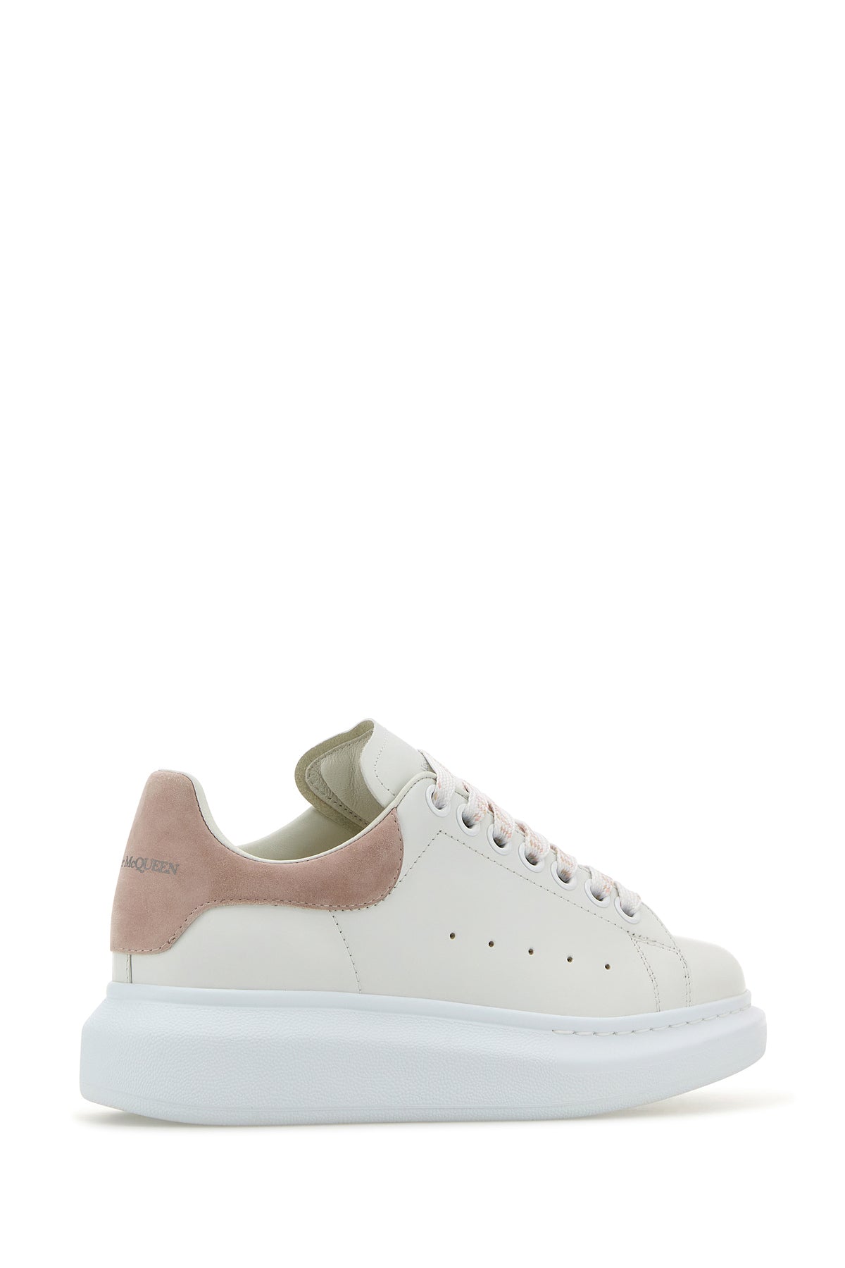 White leather sneakers with powder pink suede heel