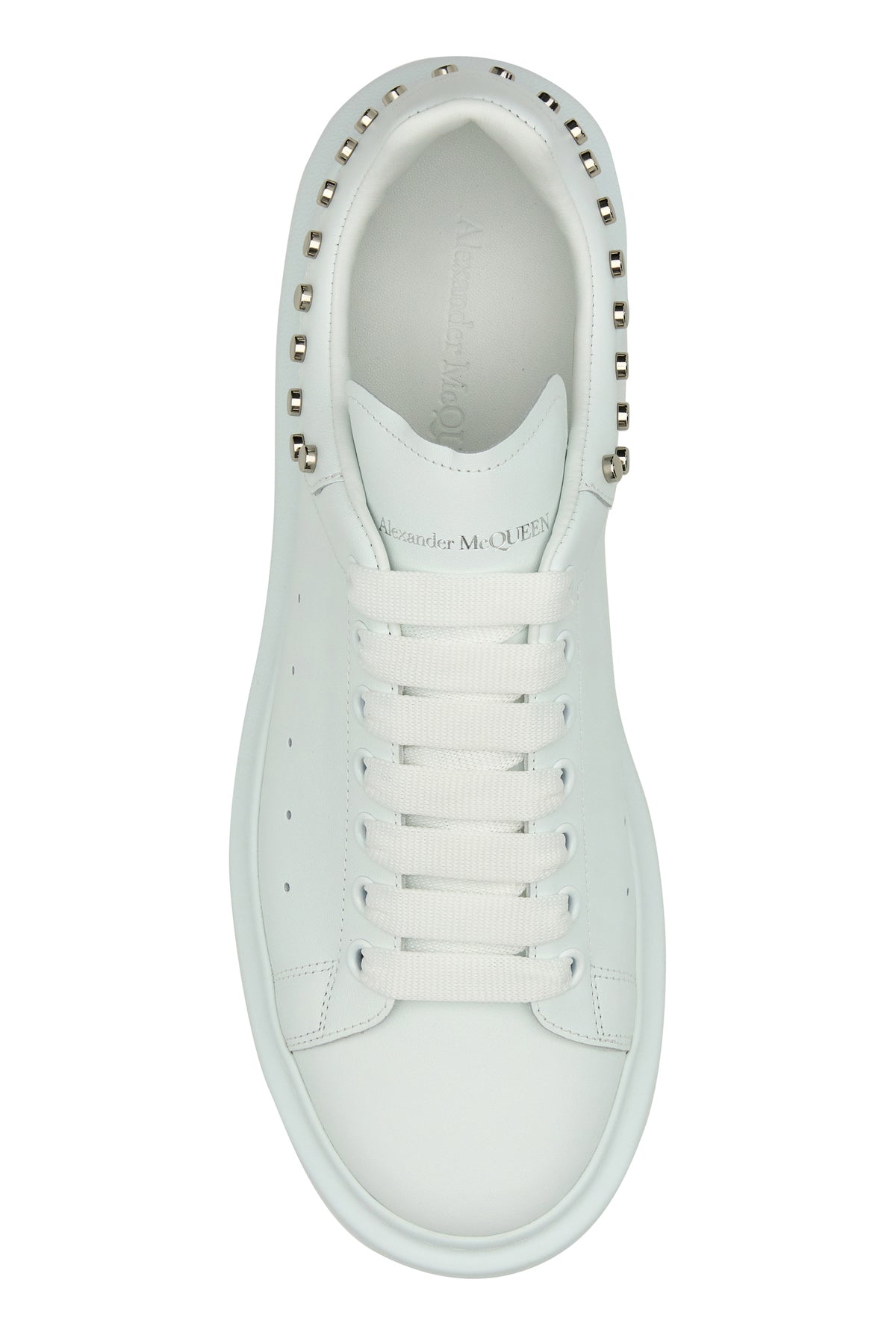 Sneakers realized in calf leather characterized by laminated printed logo enriched by metal studs on the heel.
