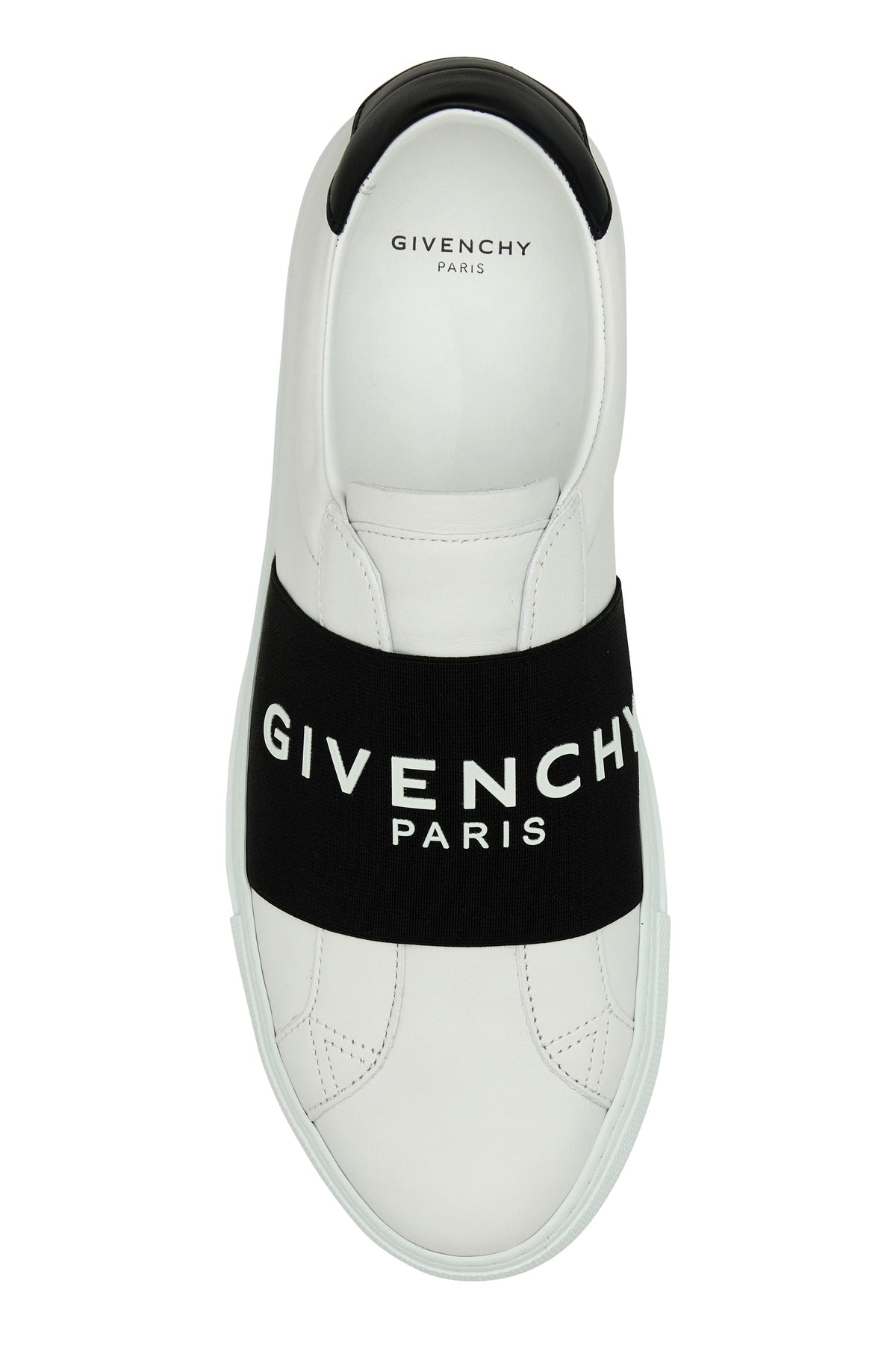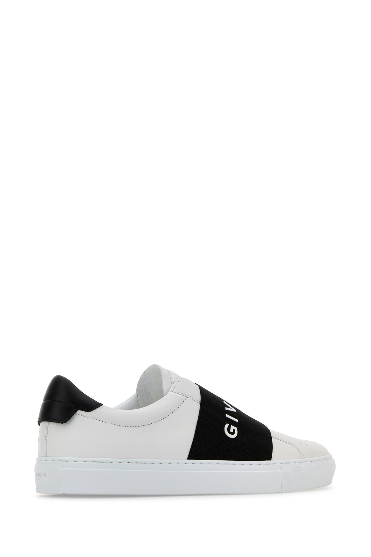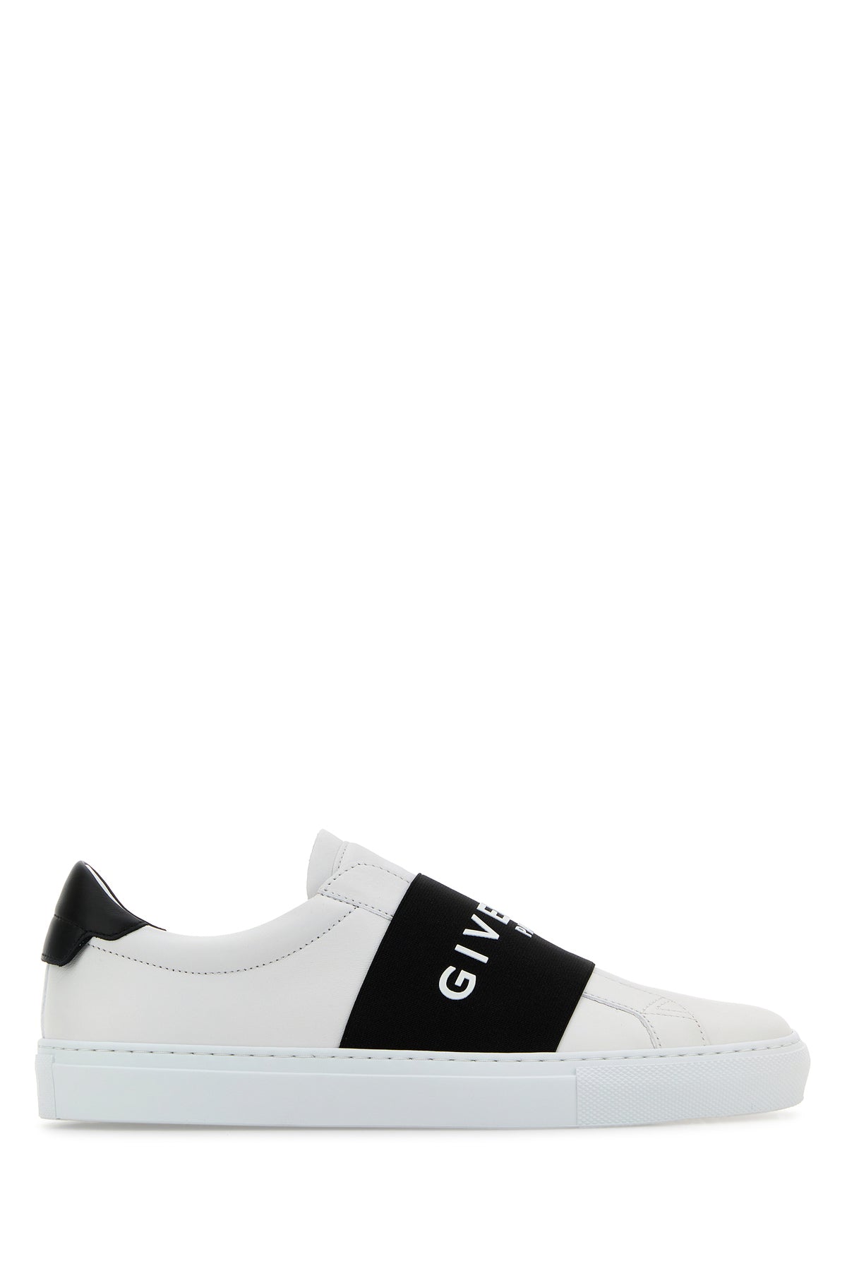 Slip ons realized in smooth calf leather characterized by embossed logo at the back enriched by contrasting Givenchy Paris elastic band on the instep.