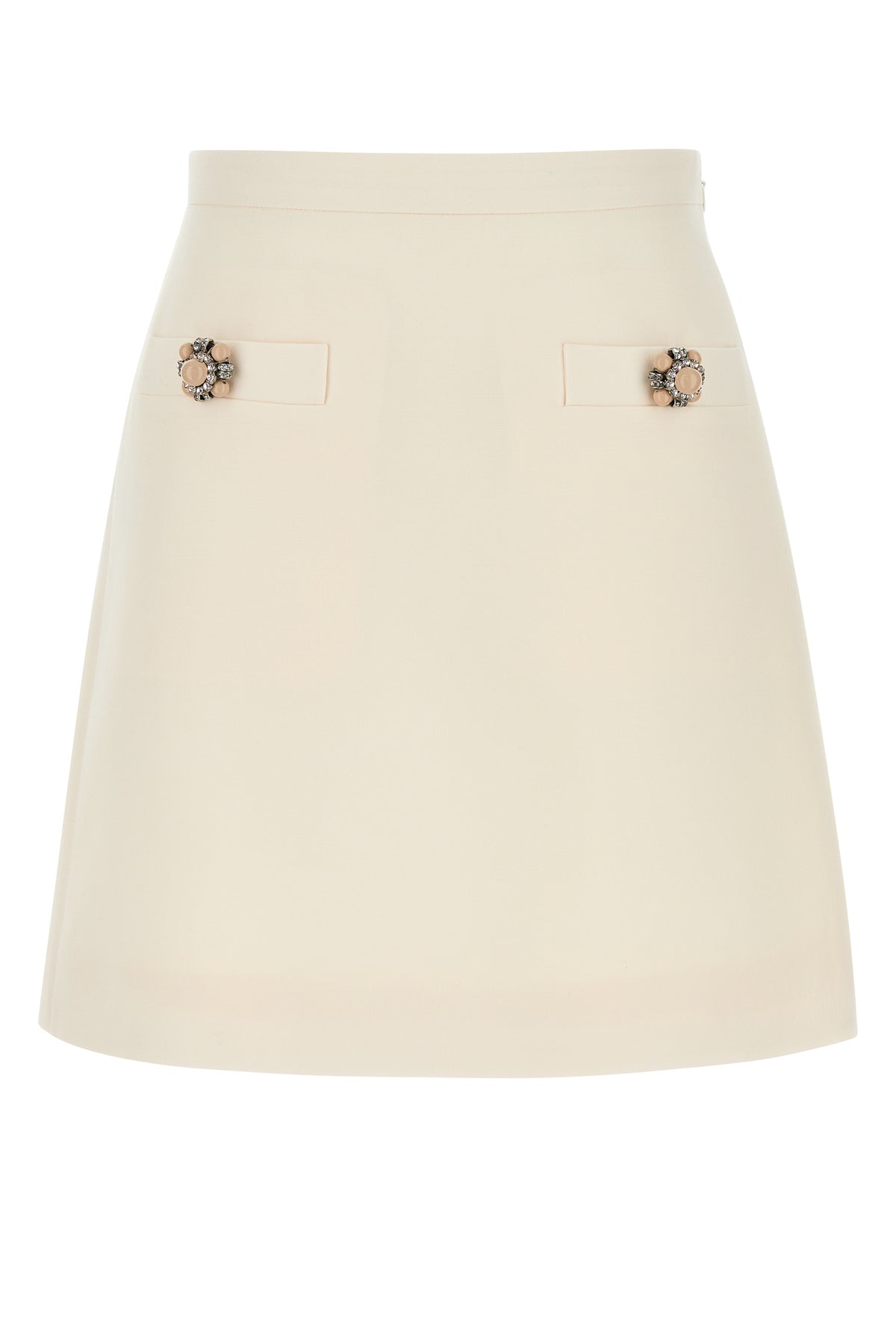 Mini skirt realized in virgin wool and silk enriched by jewel buttons at the front.