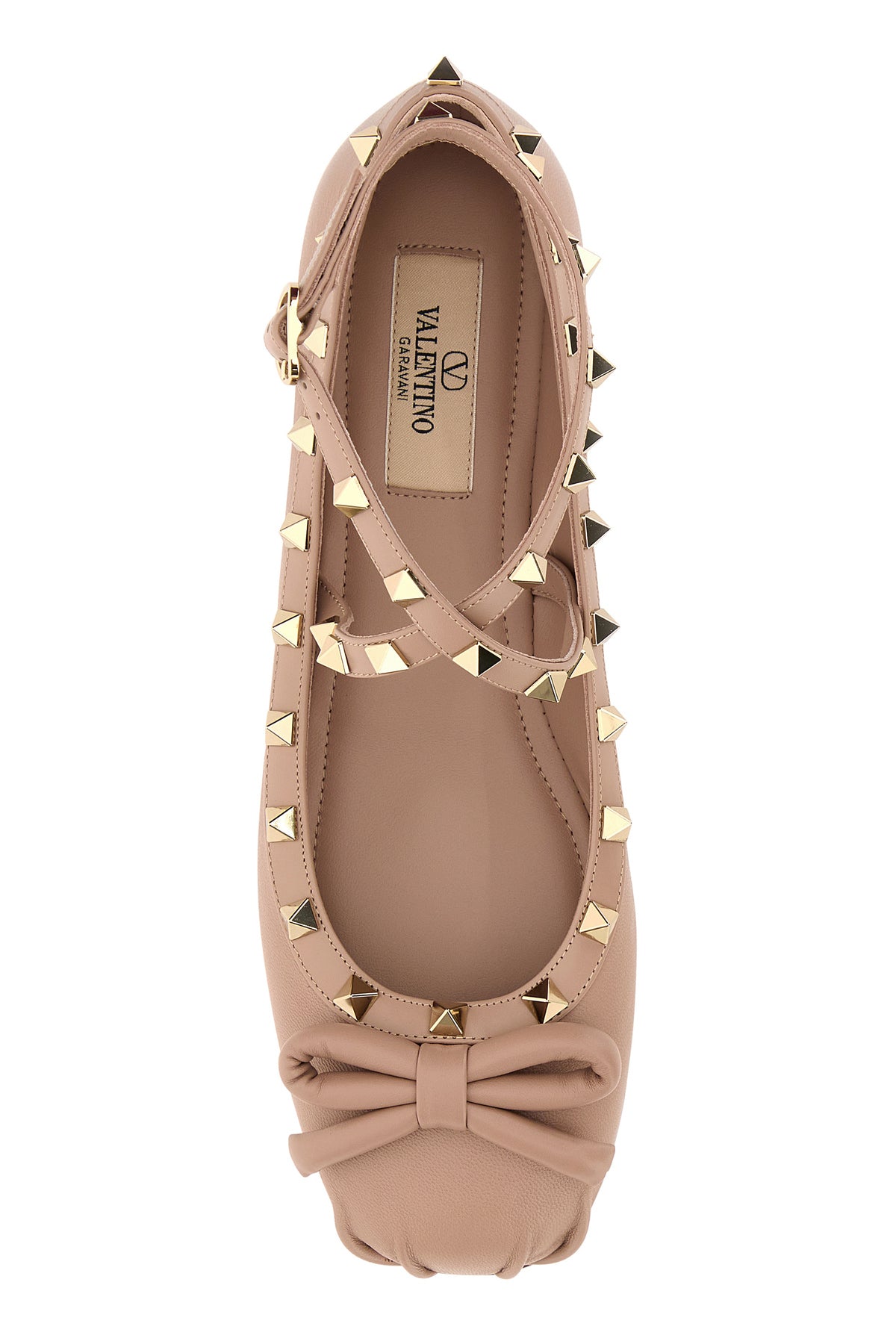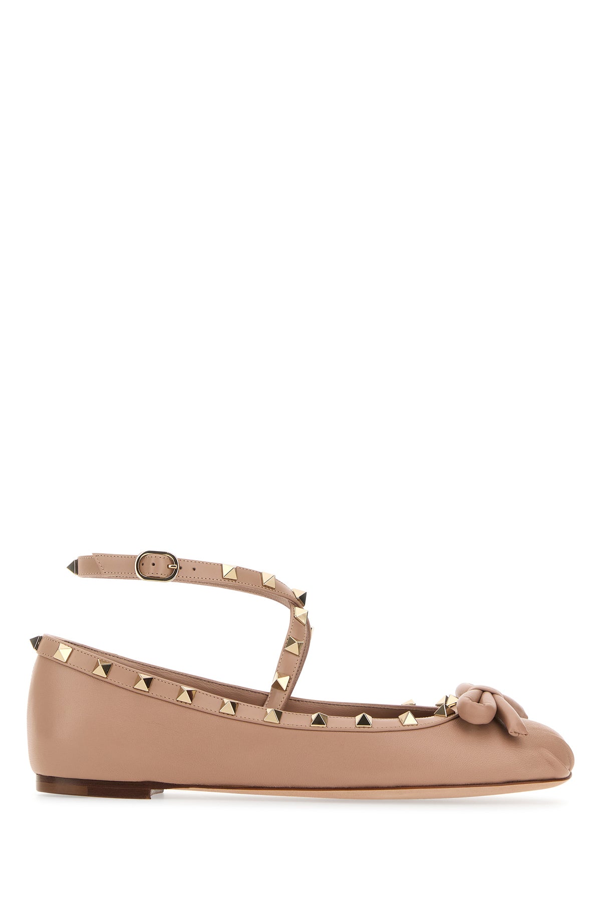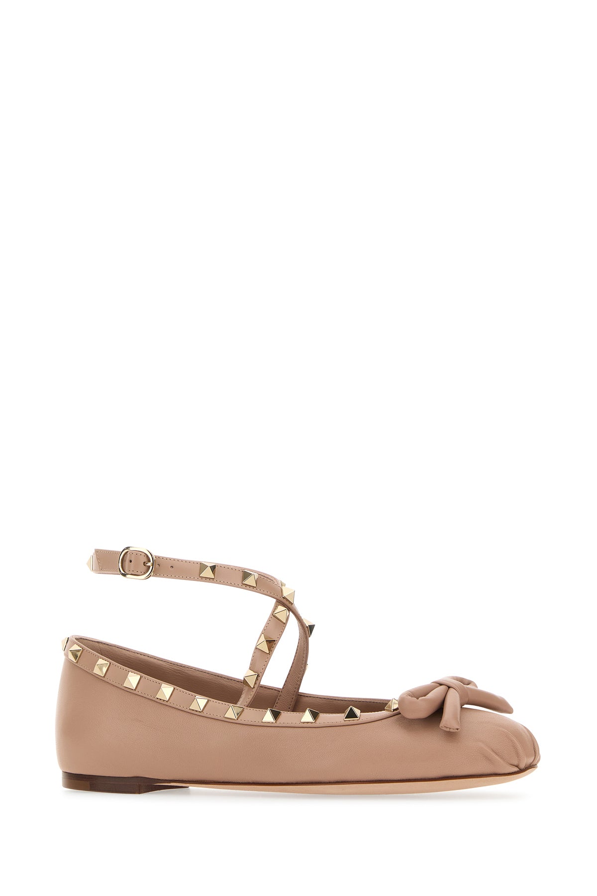 Ballerinas realized in slightly pebble nappa leather enriched by metal studs on the trimmings and decorative bow on the toe.