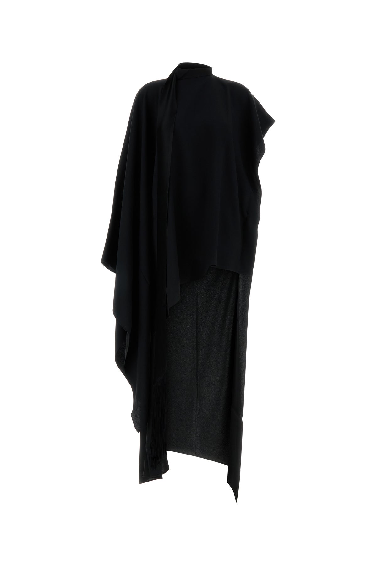 Kaftan realized in cady characterized by fringes on the hemline.