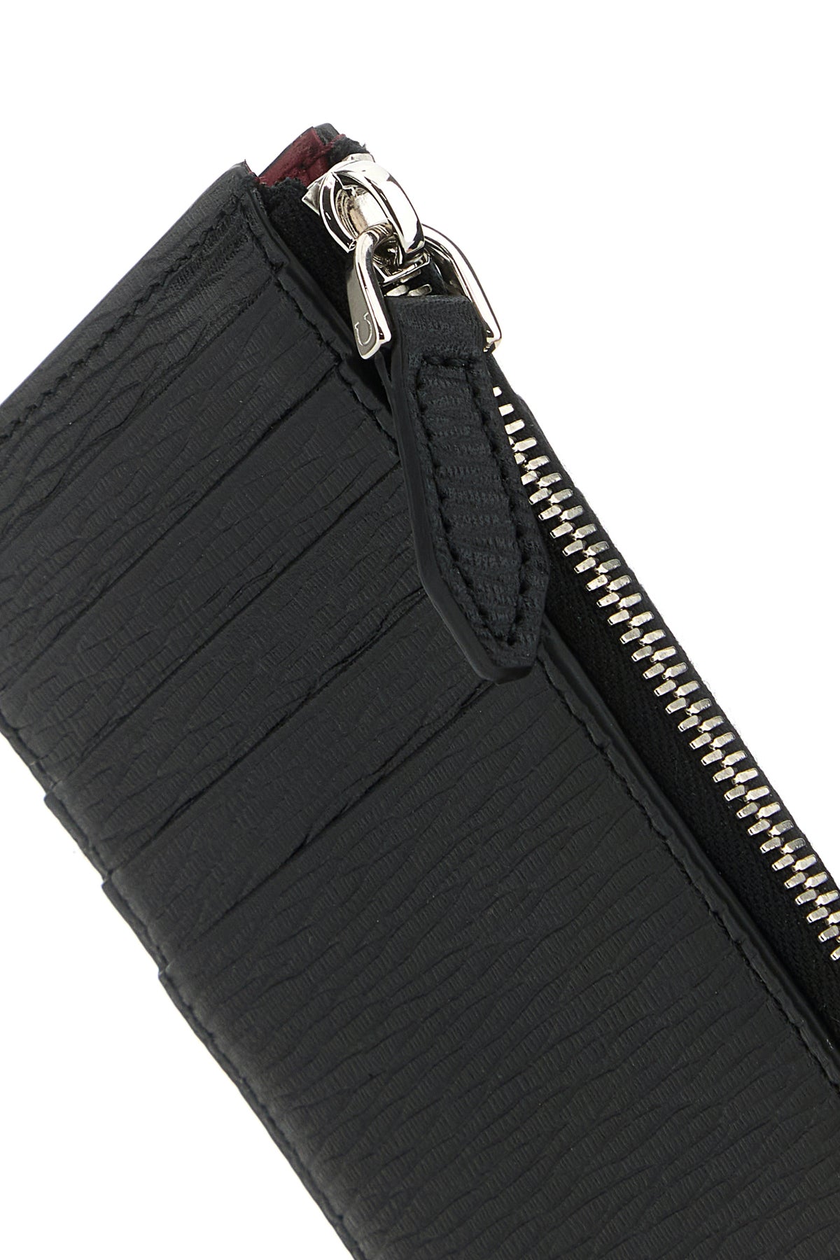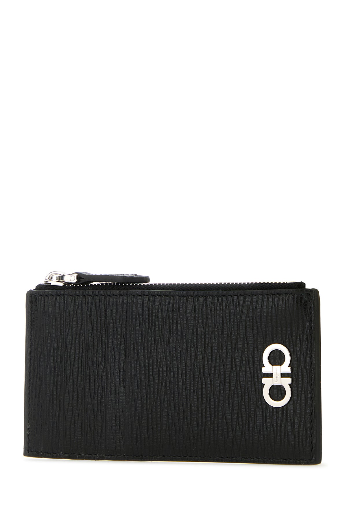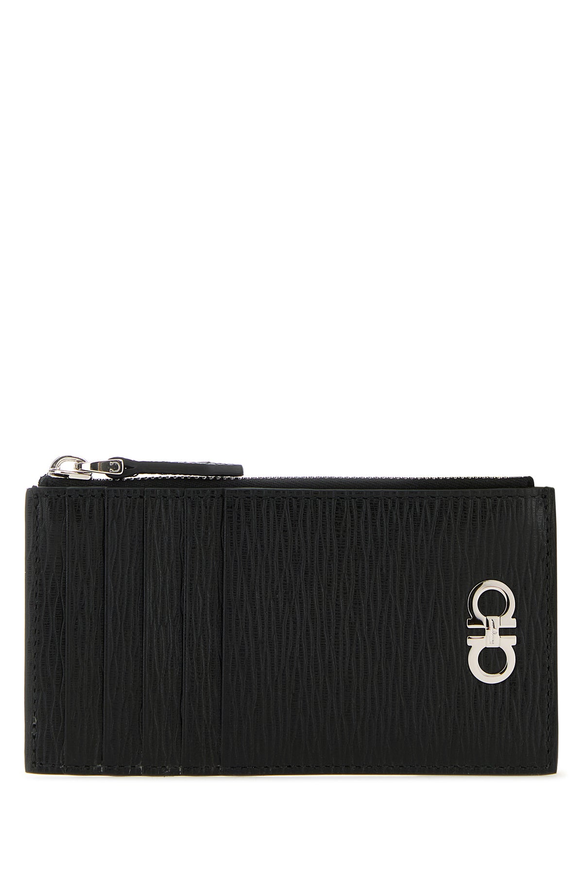 Card holder realized in grained calf leather characterized by embossed logo at the back enriched by metal Gancini detail at the front.