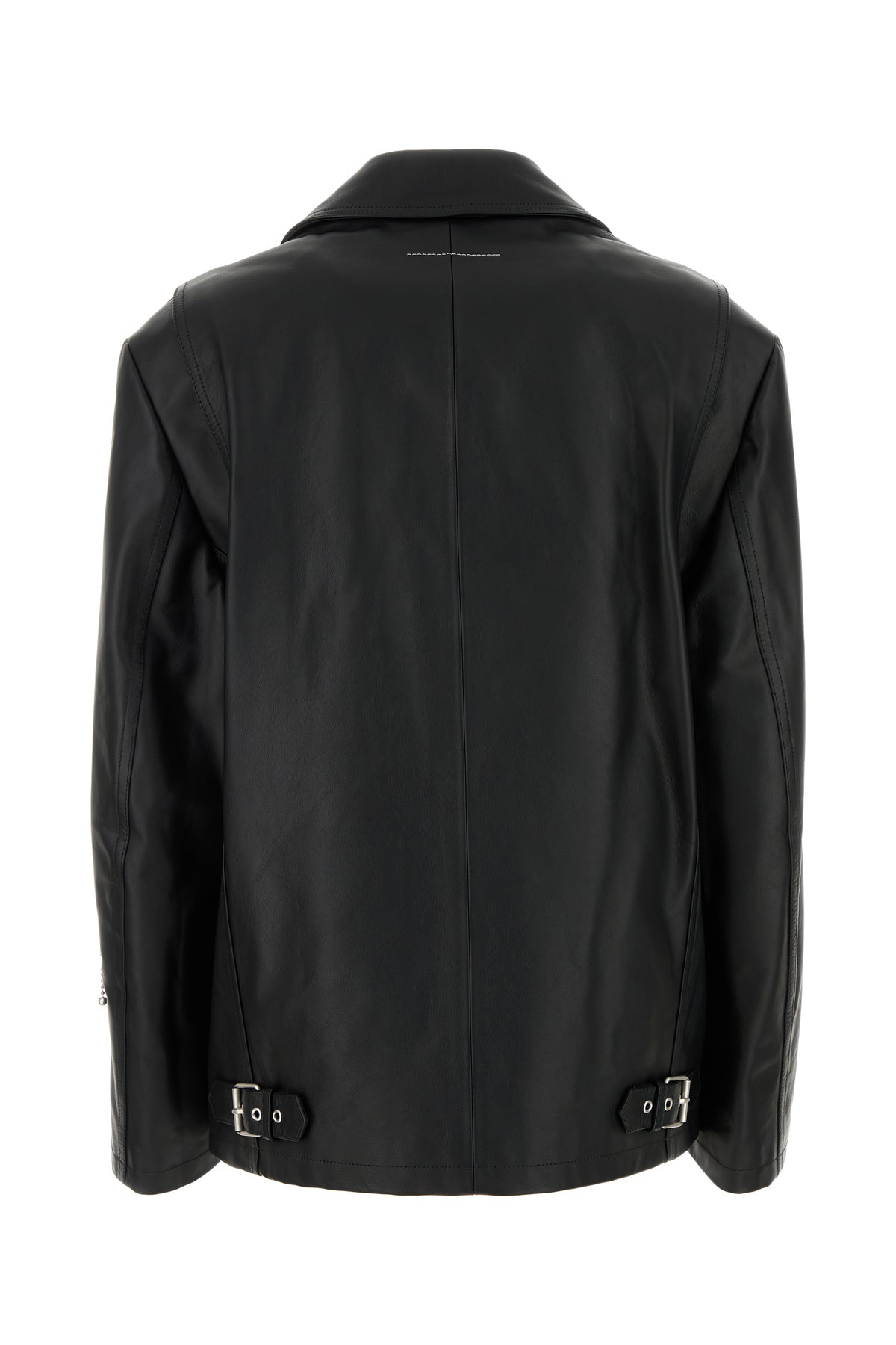 Jacket realized in bovine leather characterized by iconic contrasting stitching at the back.
