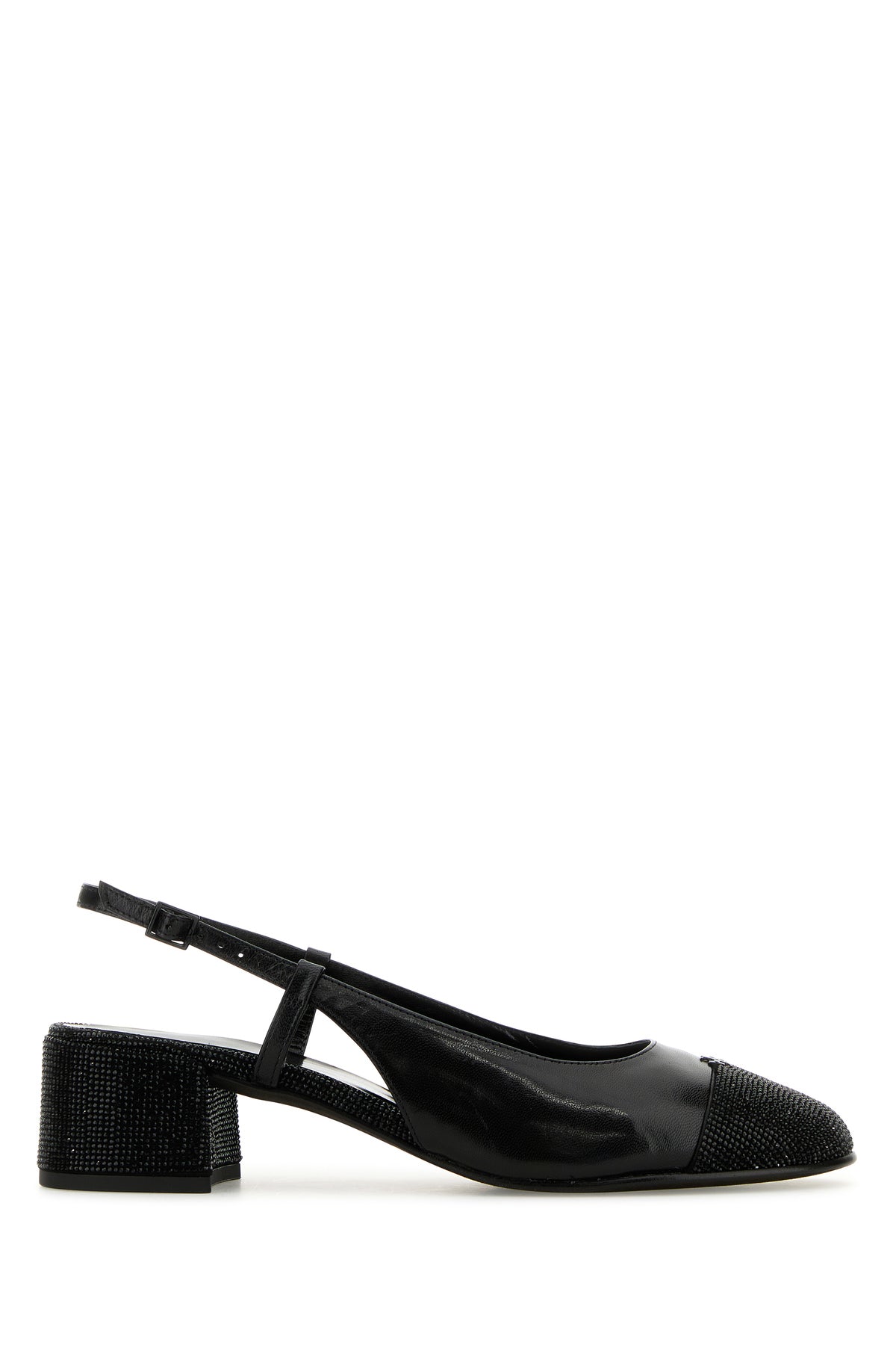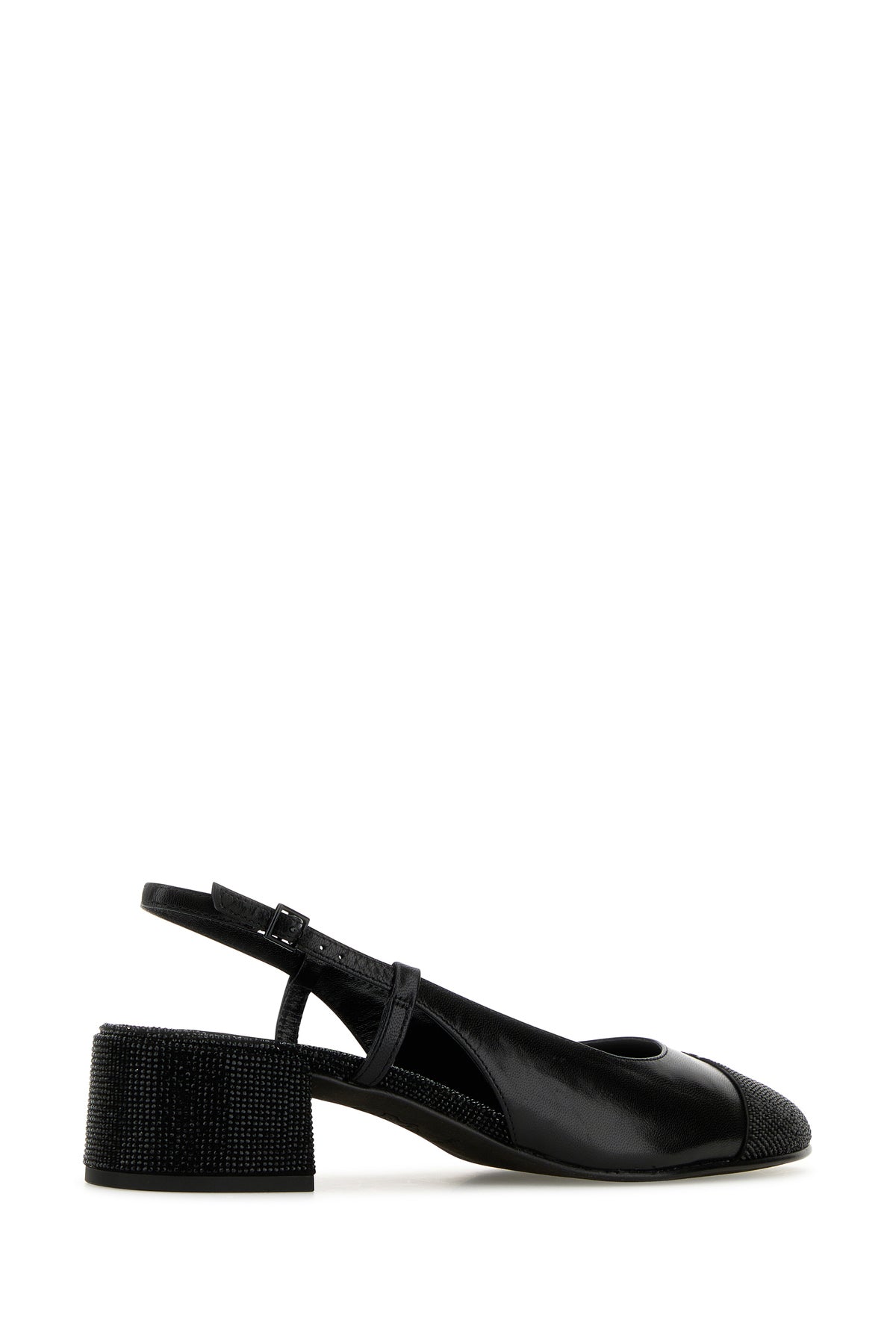 Black leather pumps