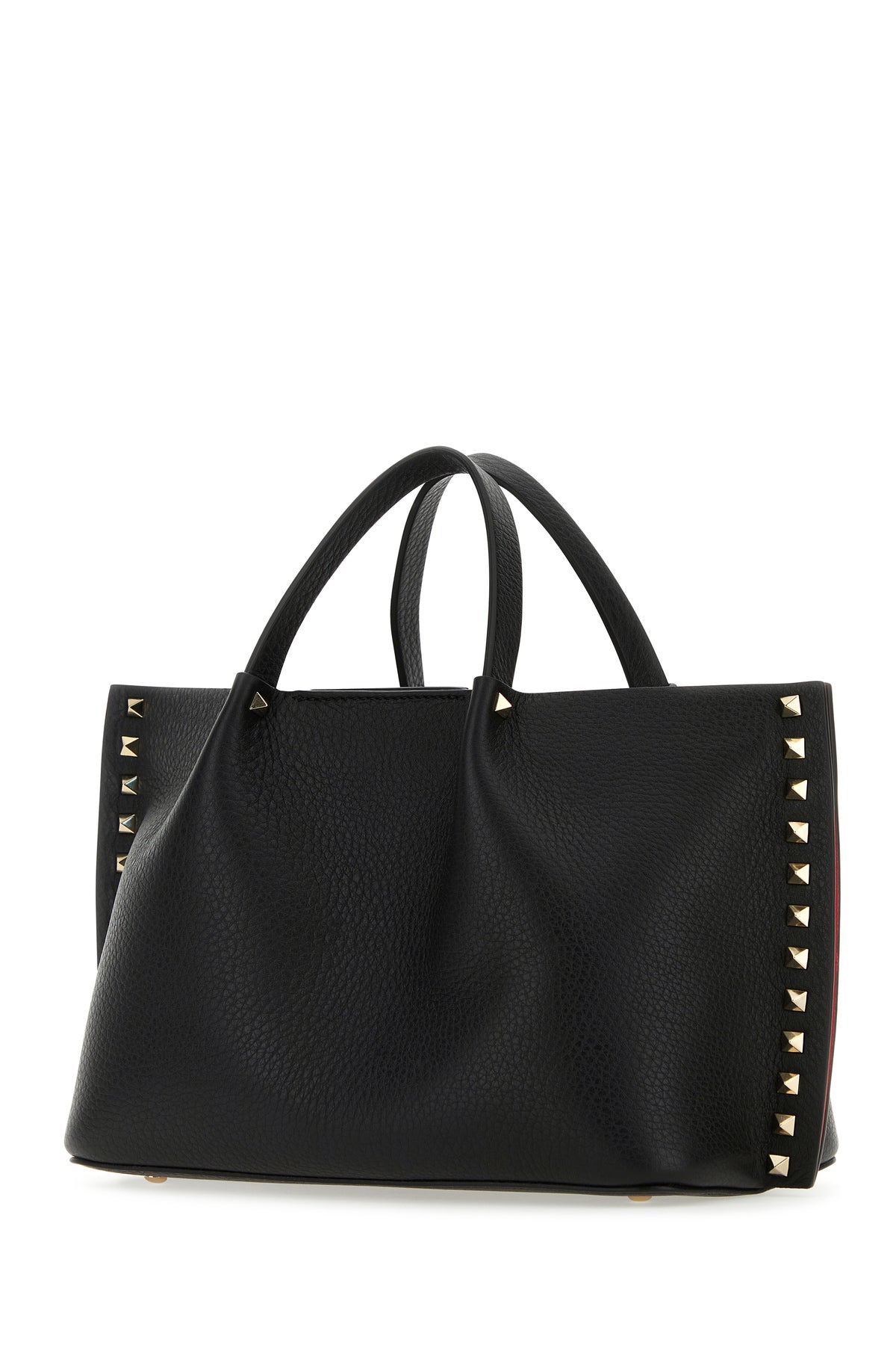 Handbag realized in pebble calf leather enriched by metal studs on the trimmings.