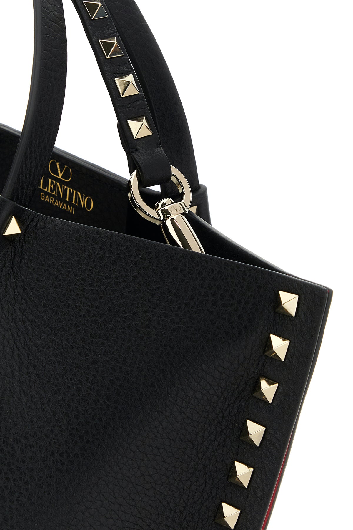 - Detachable tonal leather shoulder strap with metal studs