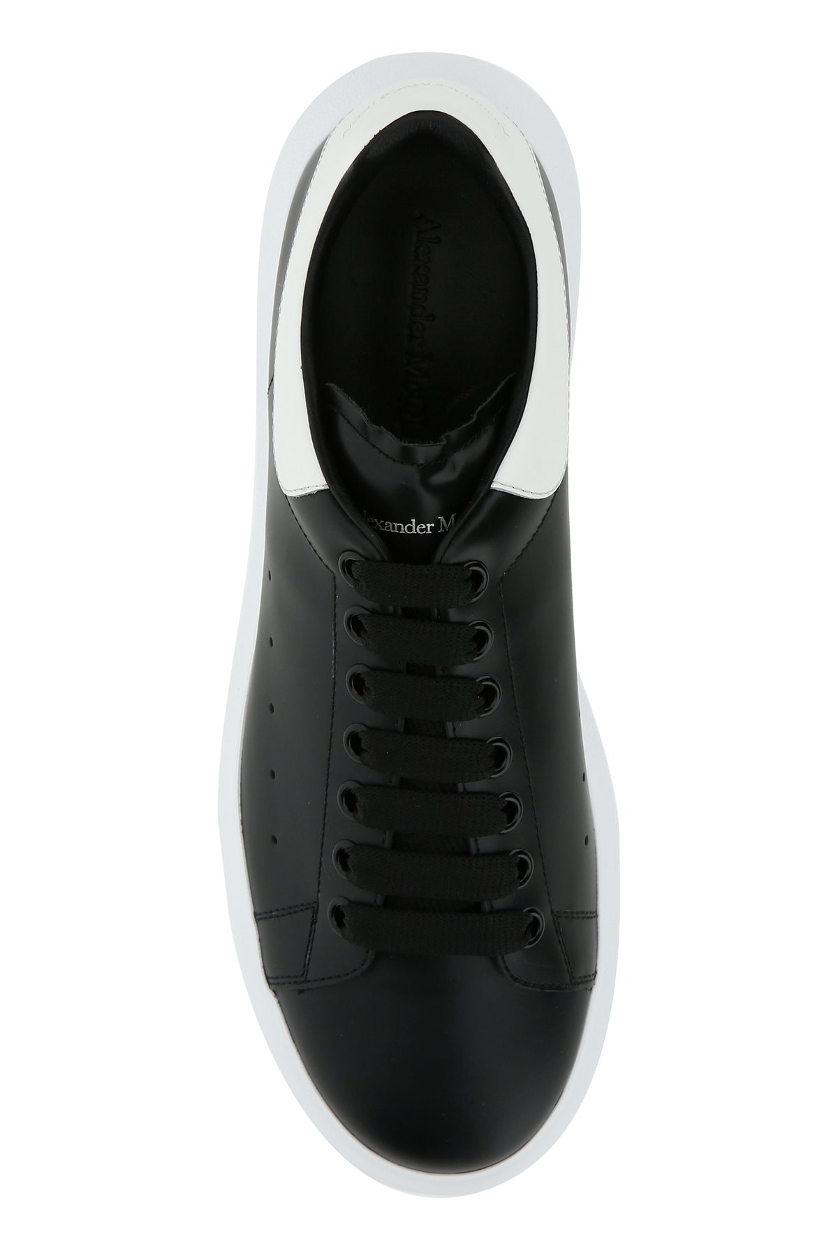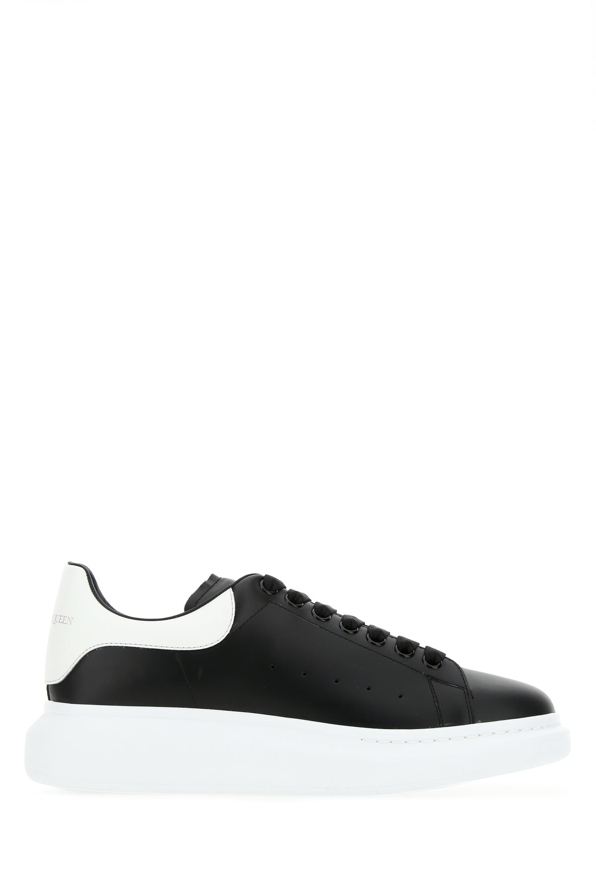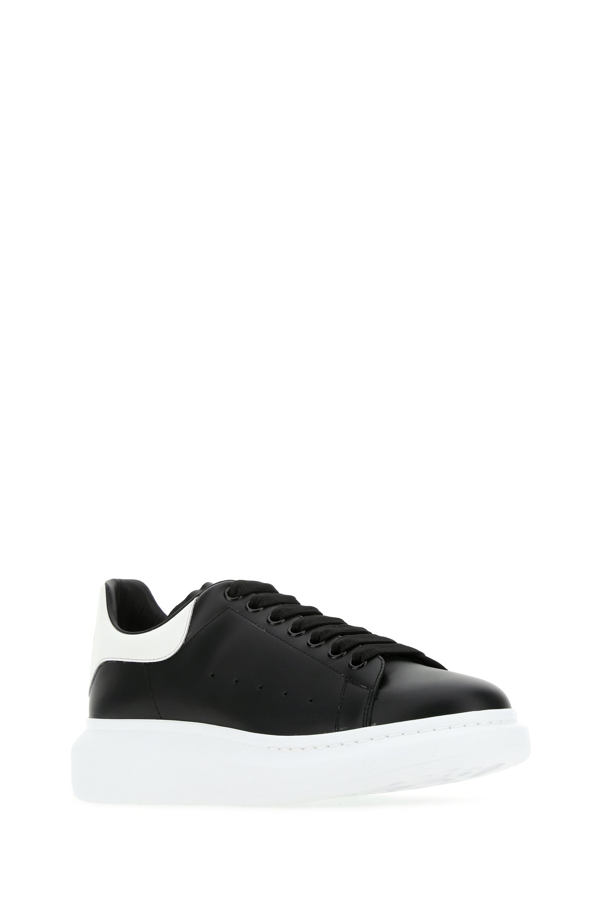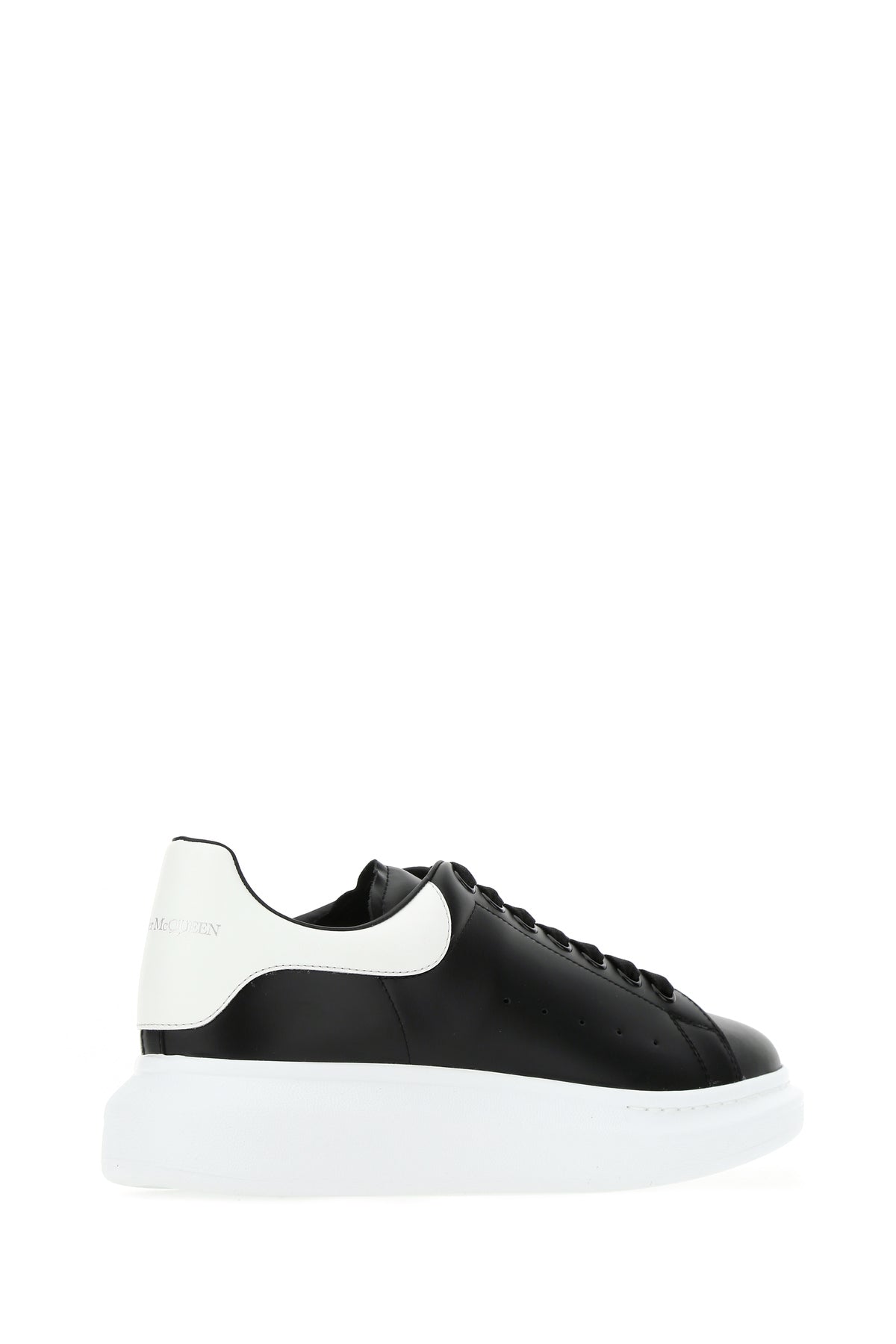 Black leather sneakers with white leather heel