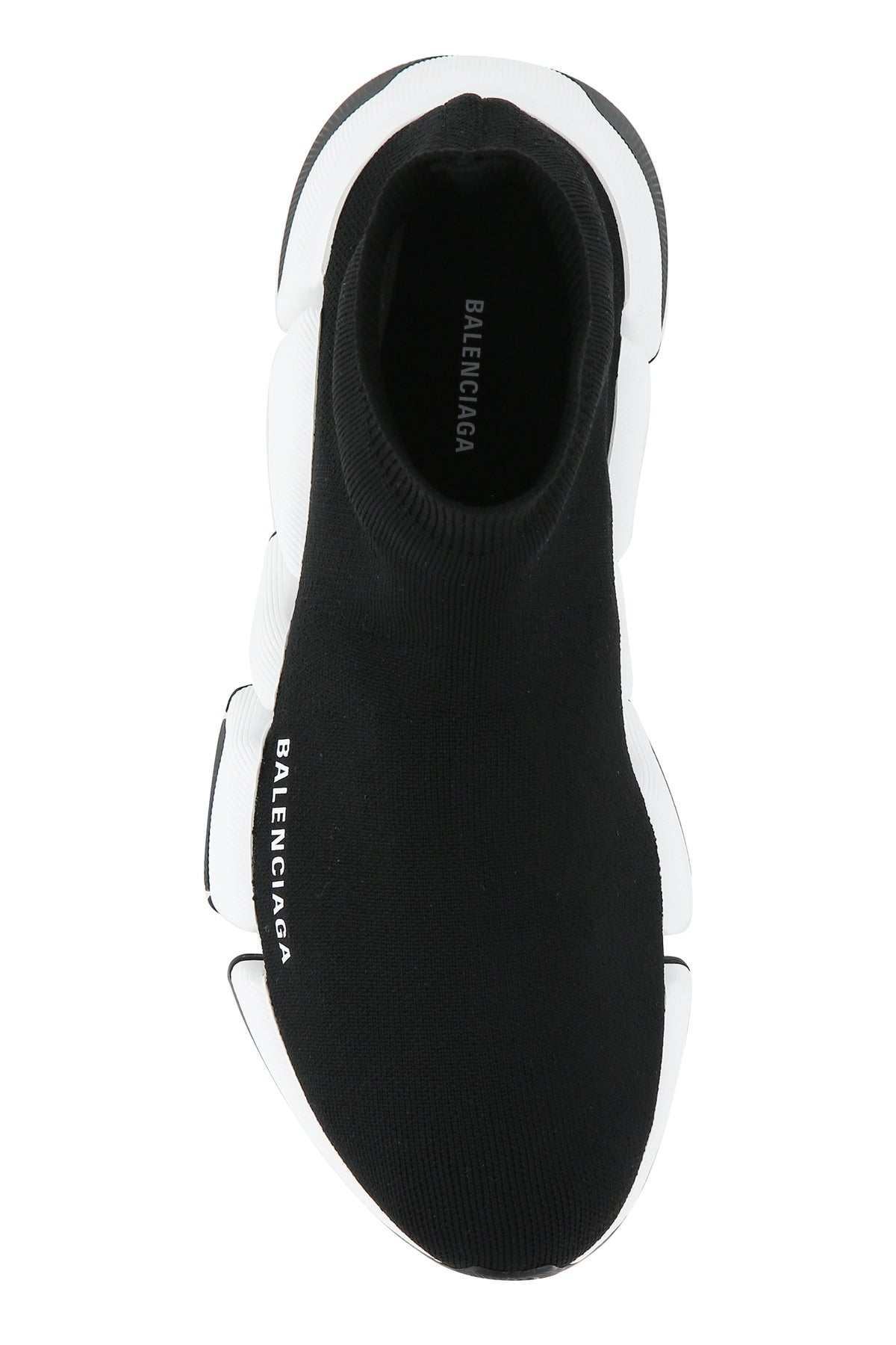 High sock sneakers realized in stretch fabric characterized by contrasting printed logo on the side and embossed logo at the back.