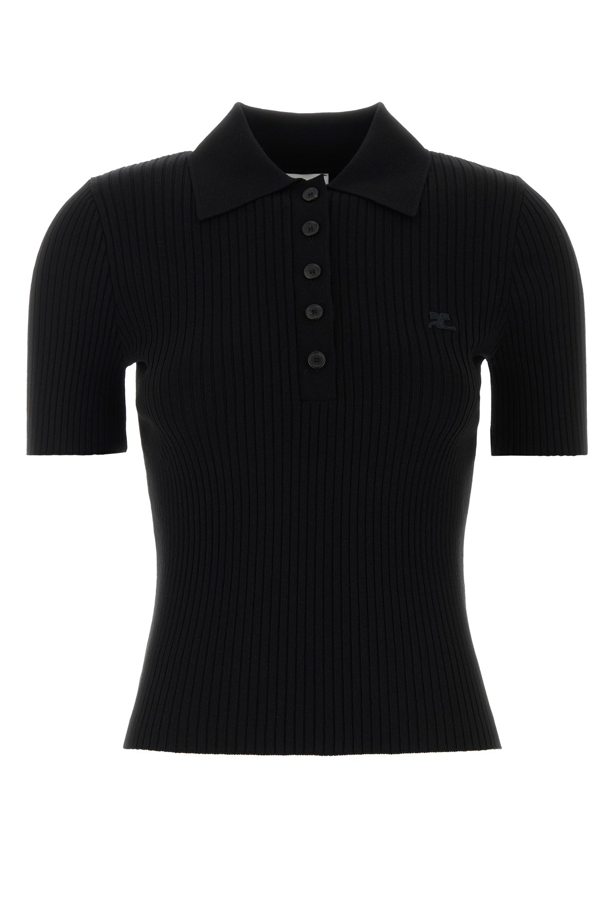Black viscose blend polo shirt