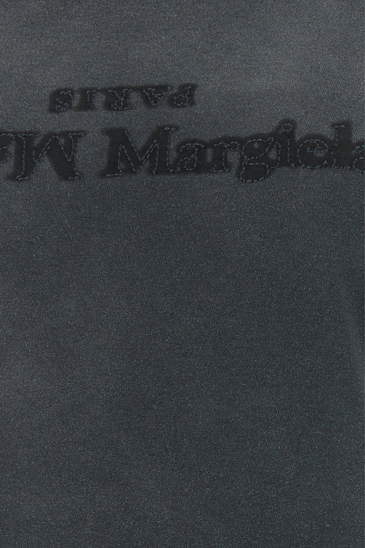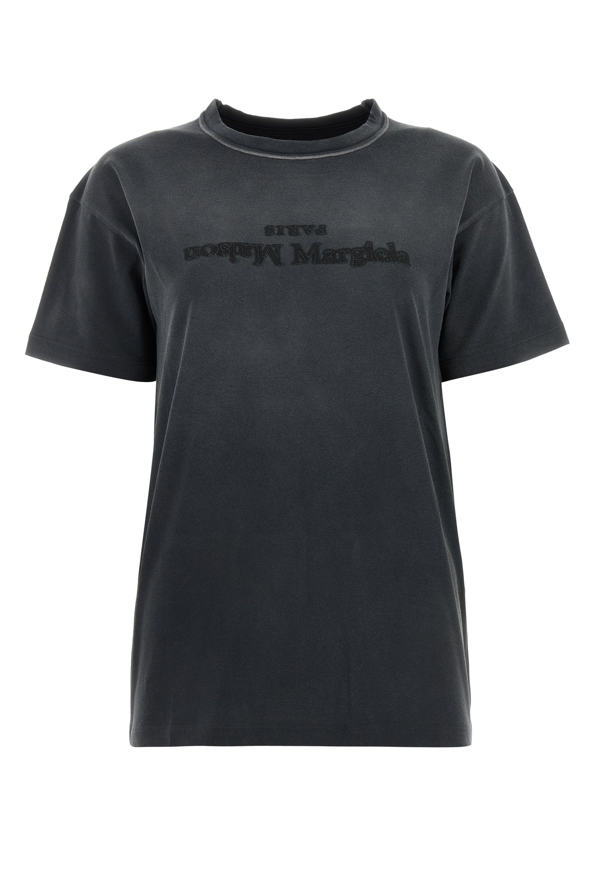 T-shirt realized in vintage effect pure cotton characterized by contrasting printed and embroidered logo on the chest and iconic contrasting stitchings at the back.