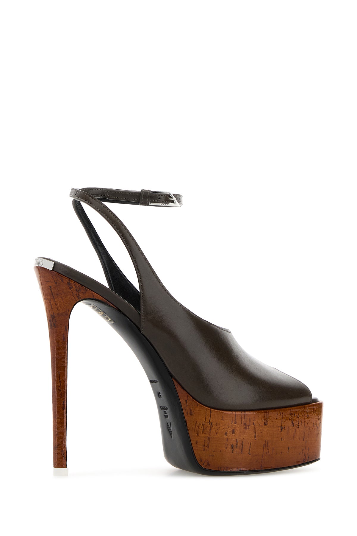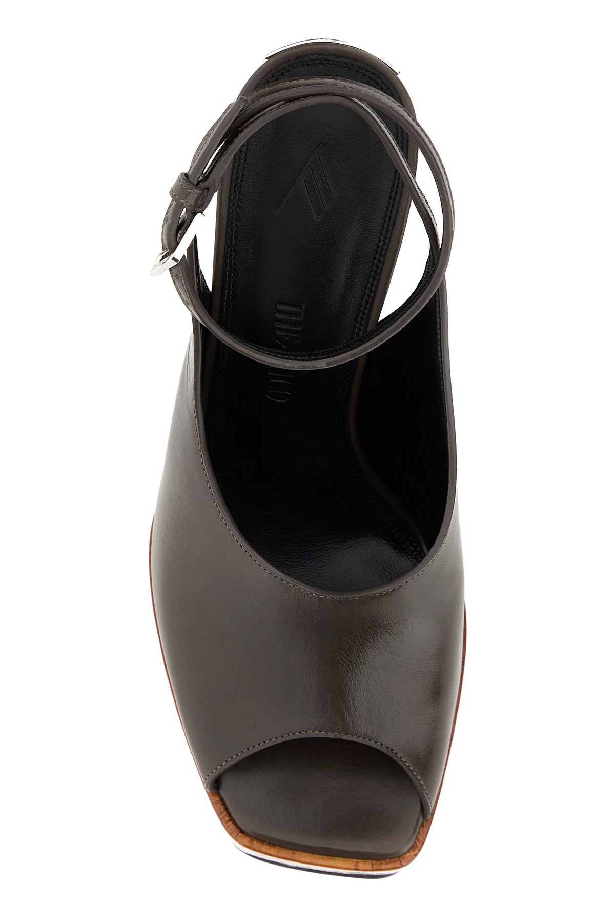 Sandals realized in leather enriched by logoed metal plate at the back.